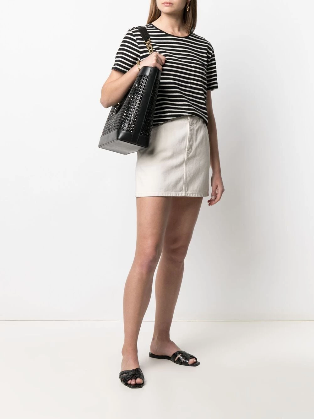 When in doubt…stripes. Boasting a tonal embroidered logo at the chest, this short-sleeve T-shirt from Saint Laurent proves that stripes will forever be chic. It’s a fact of life.