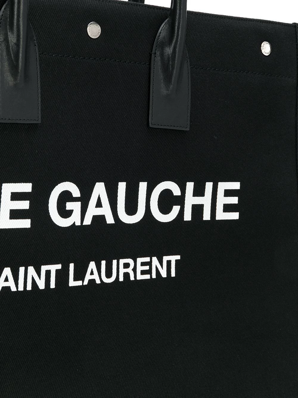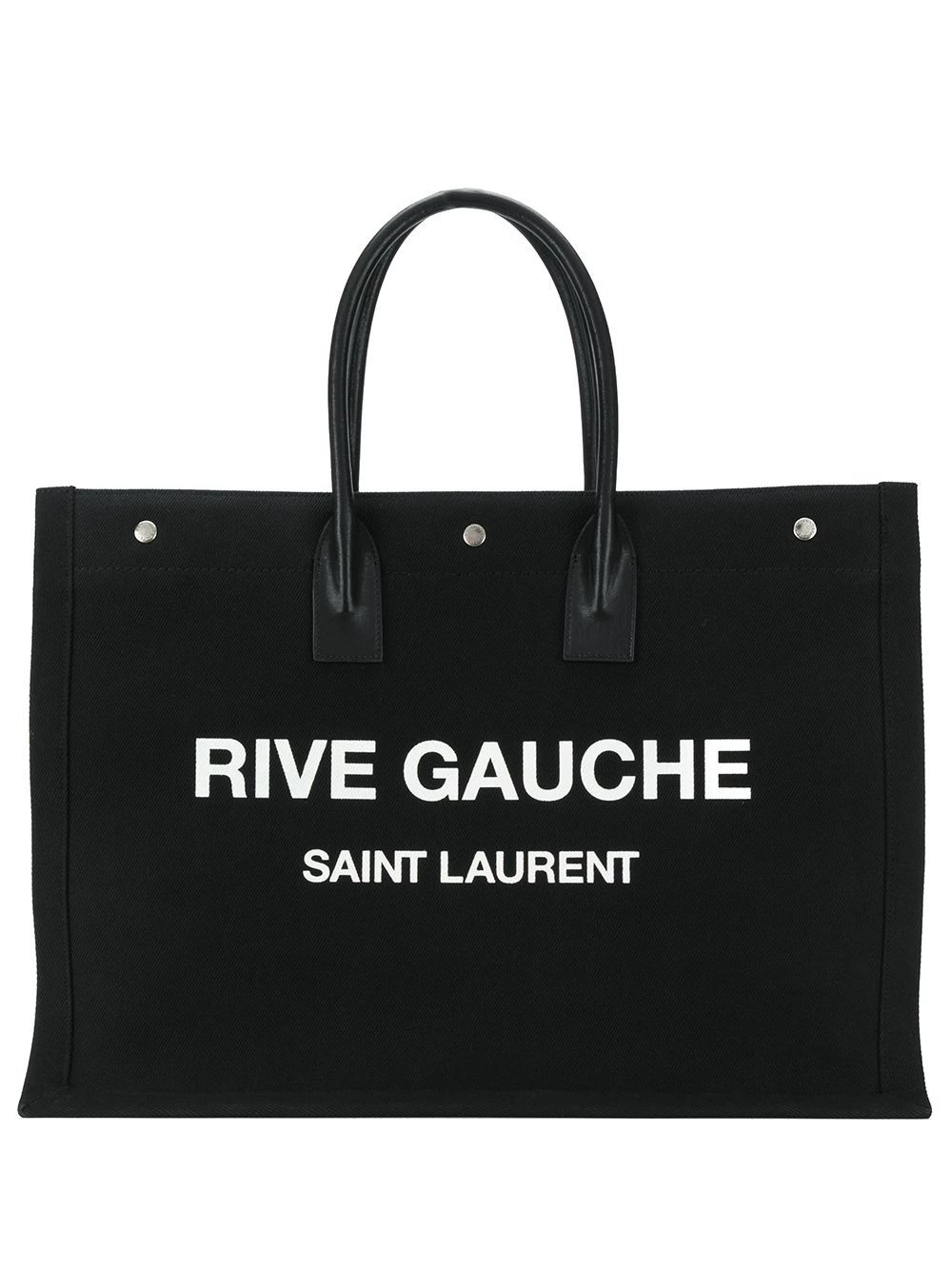 Walk into the office in style with this black cotton Noe Rive Gauche tote from Saint Laurent. Designed with a spacious internal compartment, this is the perfect daily companion to any modern man. All your essentials can fit it. Yes, even your laptop! Featuring top handles, a main internal compartment, an internal zipped pocket, a printed logo to the front and three Saint Laurent-engraved snap buttons along the closure.