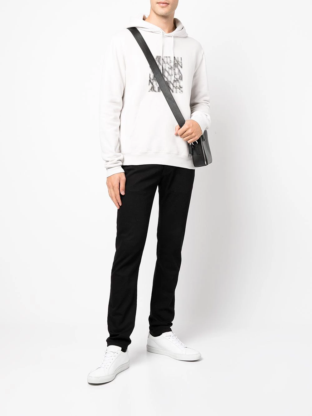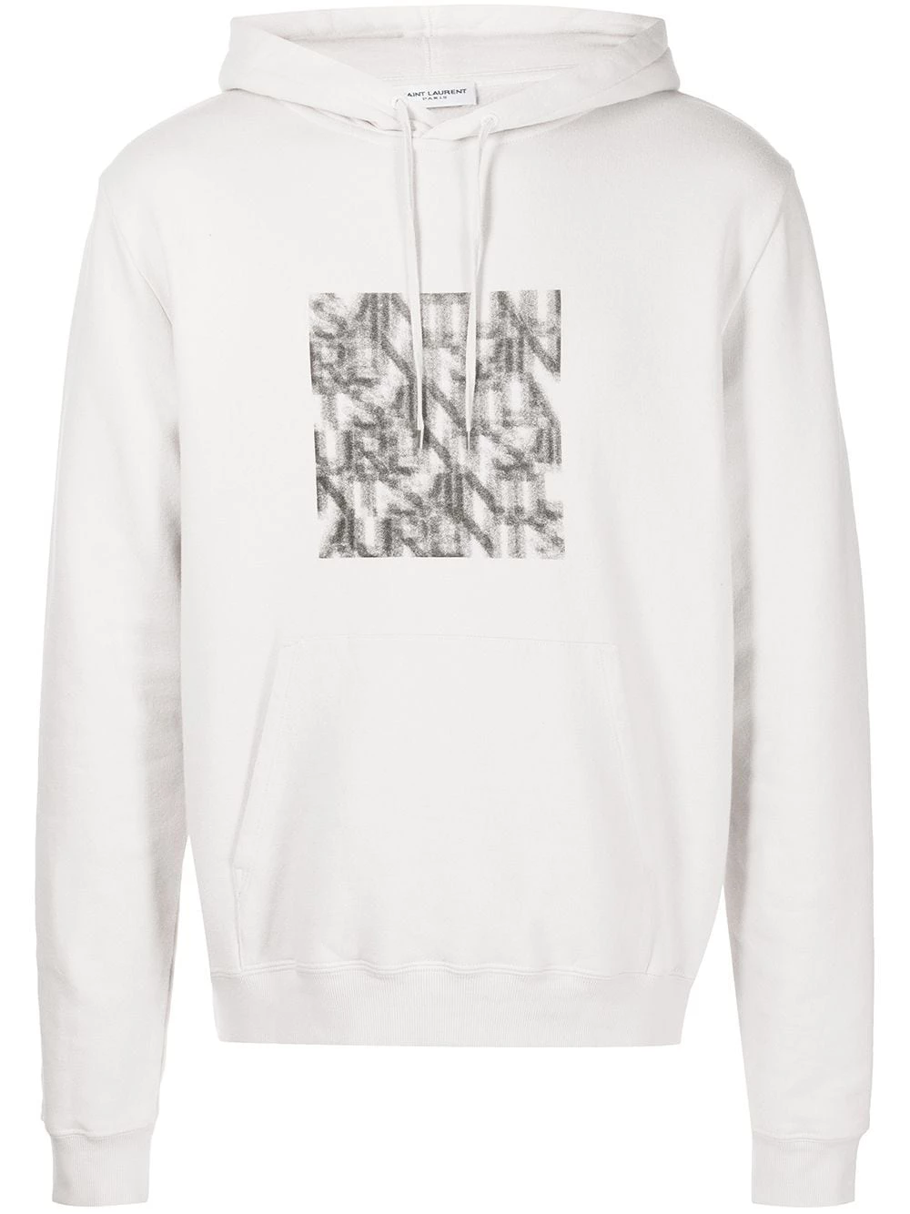 Saint Laurent adorns this classic cotton hoodie with a graphic optical illusion motif at the chest. Crafted in Italy, the relaxed silhouette benefits from a central pouch pocket and drawstring hood.