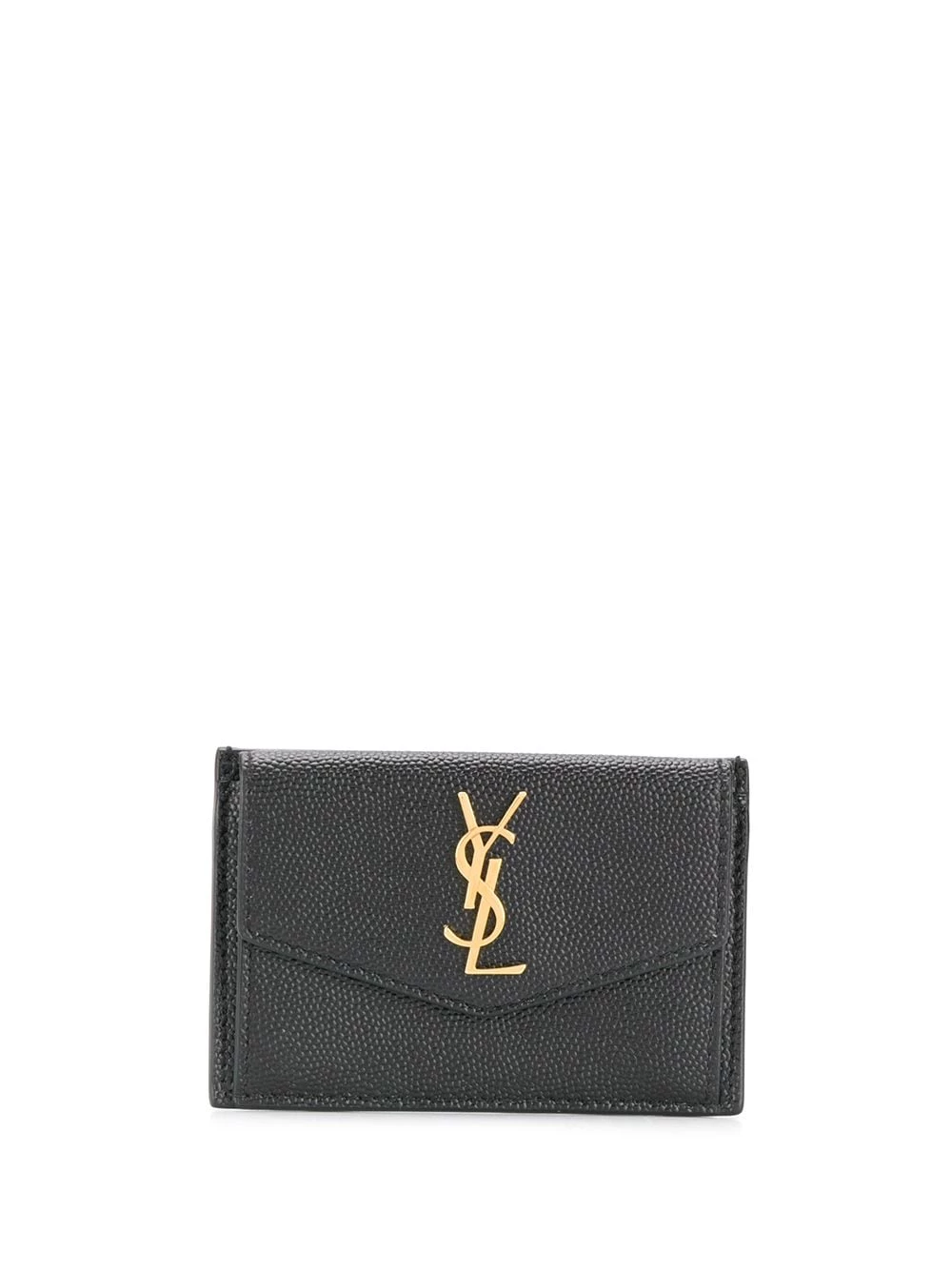 Saint Laurentโs iconic interlocking YSL logo embellishment is an instantly-recognisable symbol, representing the brandโs rich heritage and long-standing Parisian roots. Crafted from black calf leather, this Uptown card case features a foldover top with snap closure, a front logo plaque, accordion details at sides, a coin pocket, an internal logo stamp and multiple card slots.