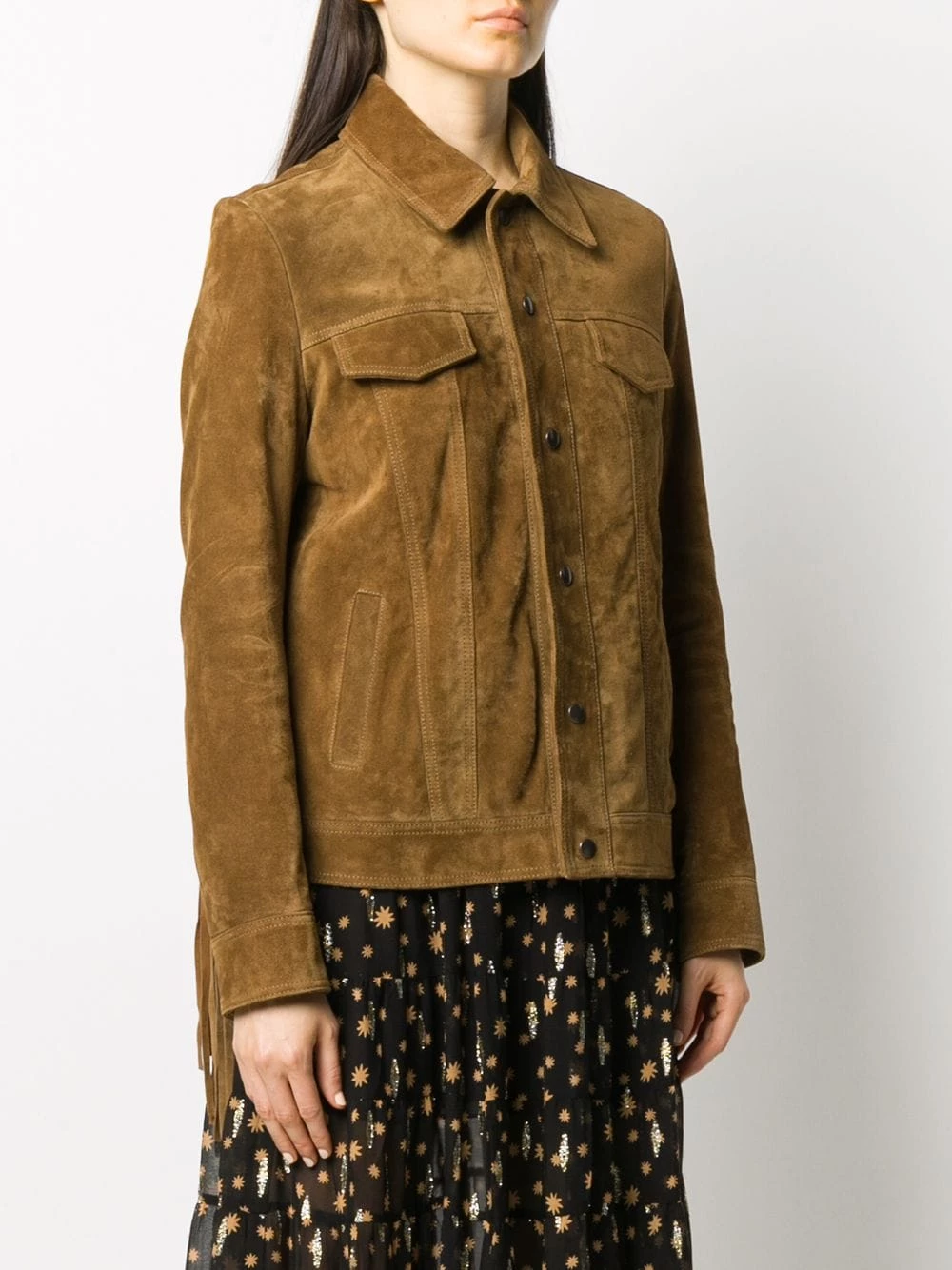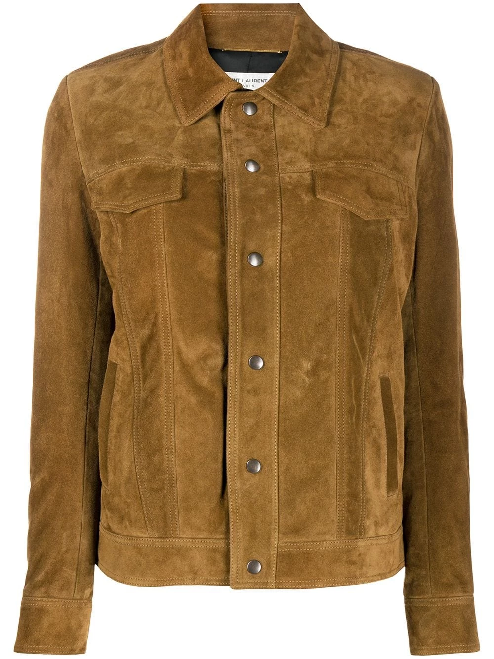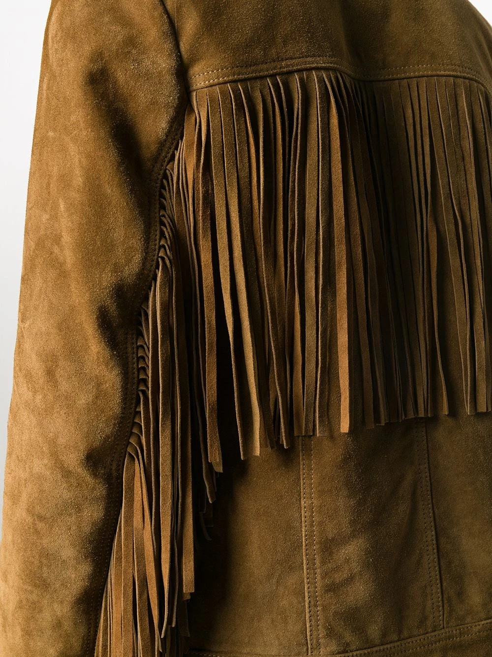 Just like an old western movie. This all-over suede leather jacket with fringing detail from Saint Laurent is a spectical of design. This is a piece for life.