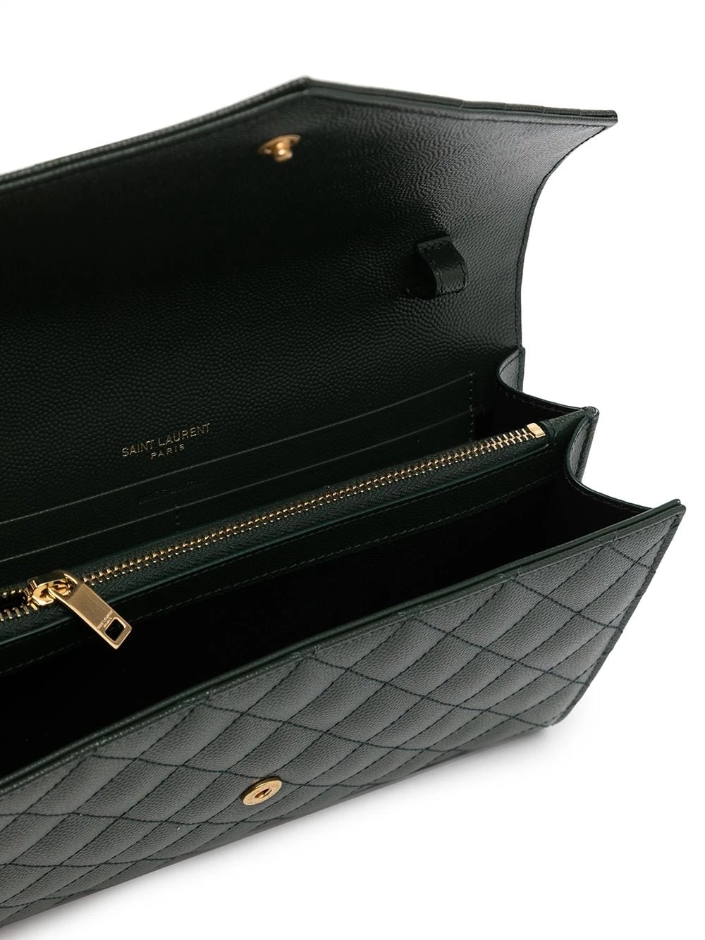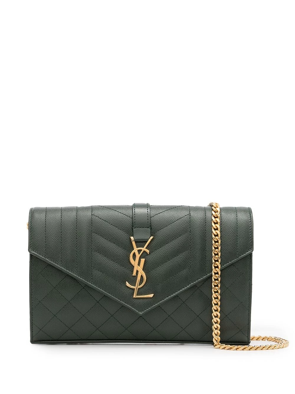 Saint Laurent presents this dark green iteration of the Envelope chain bag for AW21. First making an appearance in 1961, the monogram plaque combines the initials of the brand’s founder, paying tribute to the French label’s heritage. Today it adorns this quilted leather accessory.