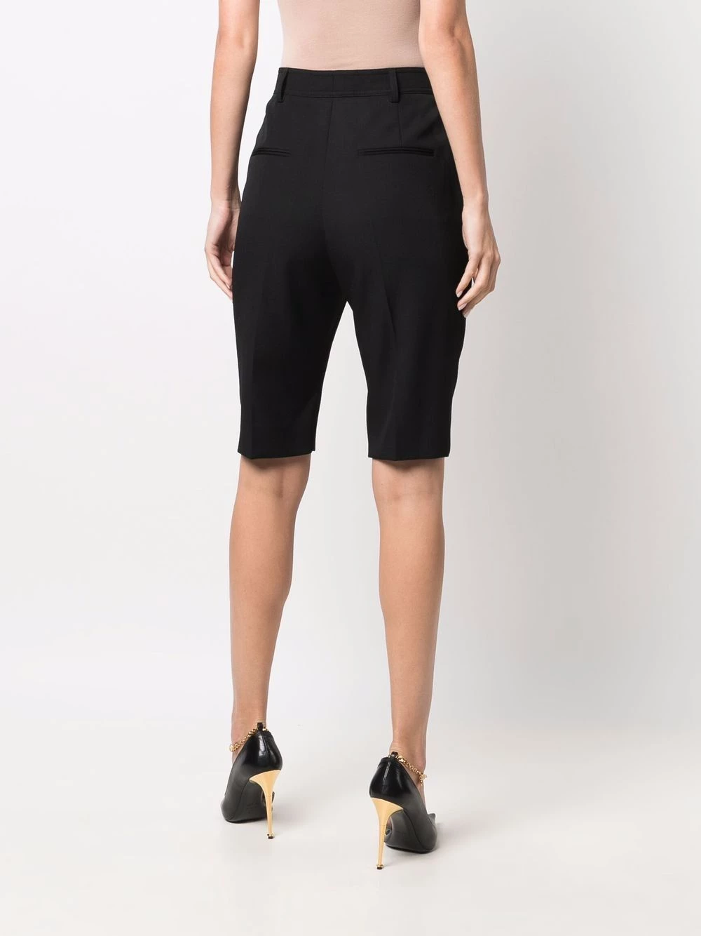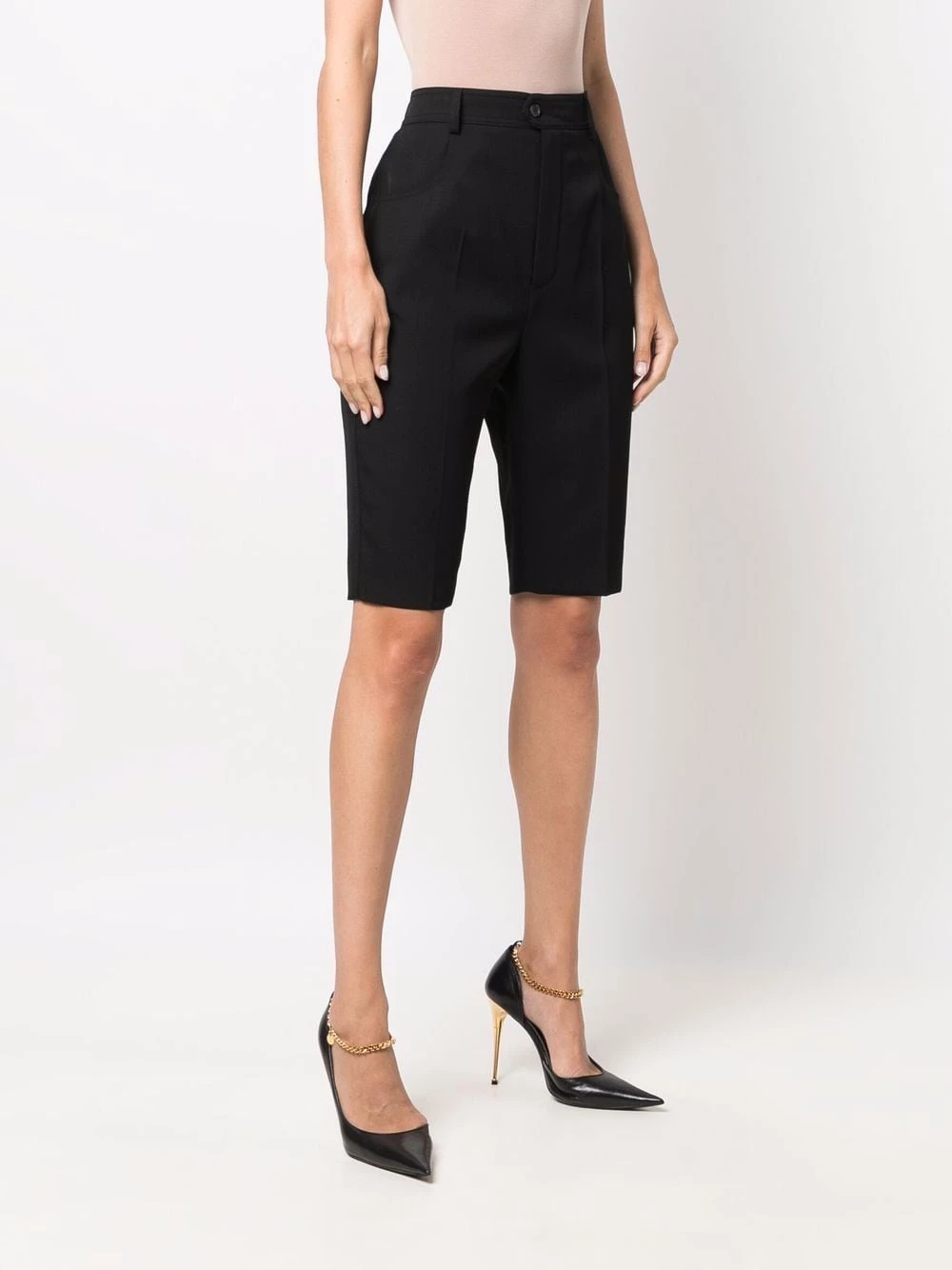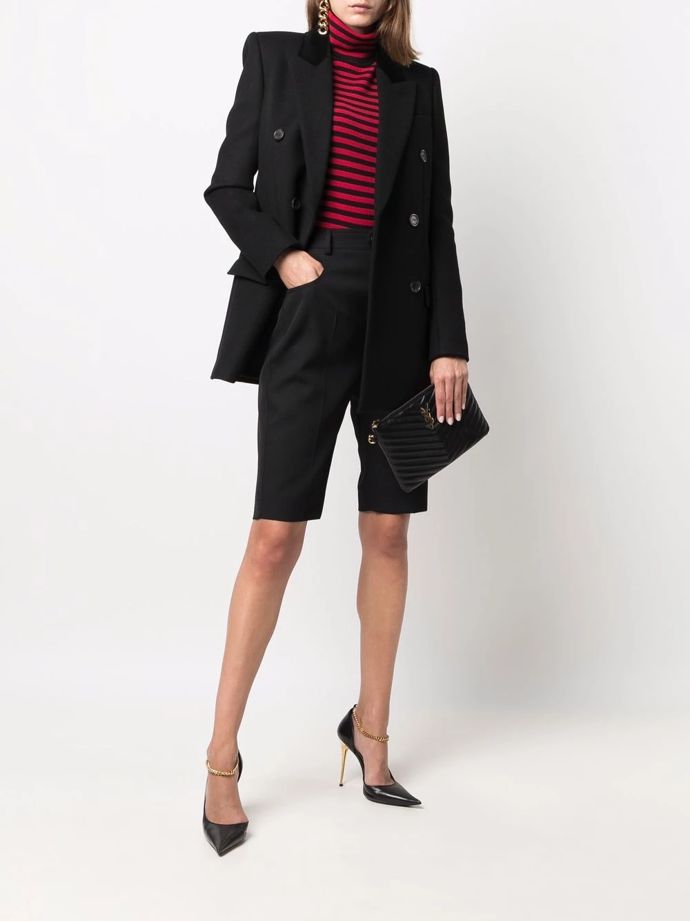 Saint Laurent showcases a contemporary take on a classic silhouette in this pair of shorts. Featuring a high waist, welt pockets and pressed crease, which is reminiscent of a pair of tailored trousers, the design is given a modern edge by being showcased as knee length.