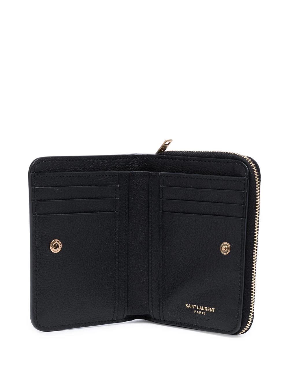 Your accessory collection has reached the gold standard, thanks to the logo plaque at the front of this Saint Laurent wallet. With a pebbled finish and top zip fastening, you’ll be keeping your cards and coins encased in sleek style. Zip to it.