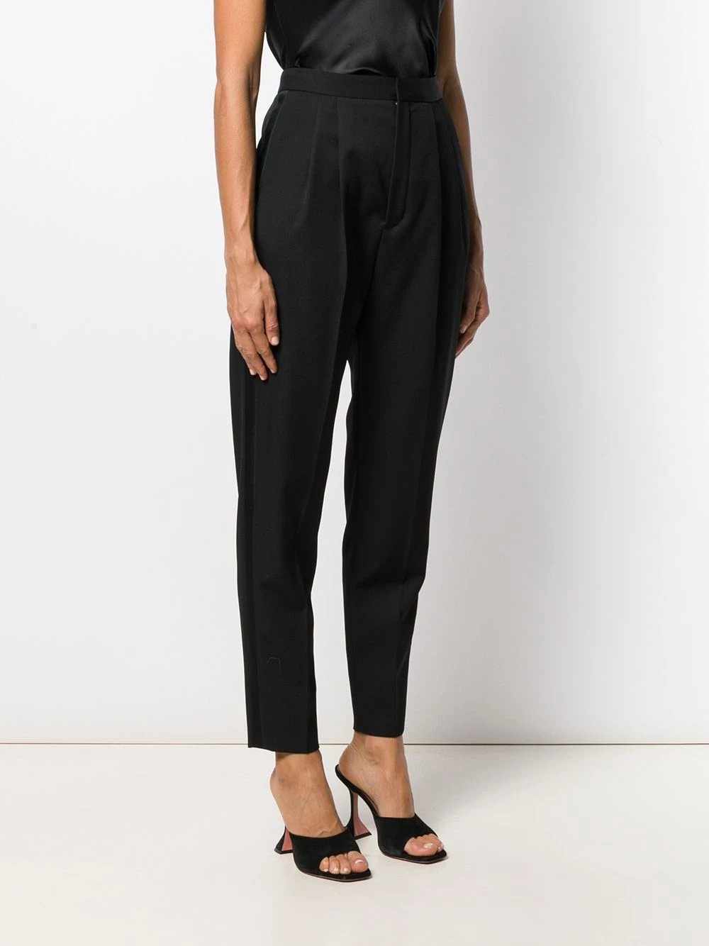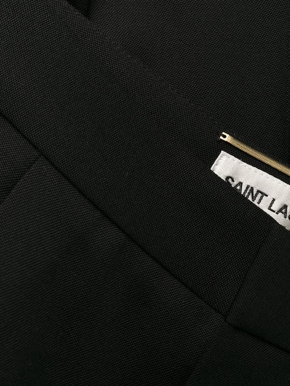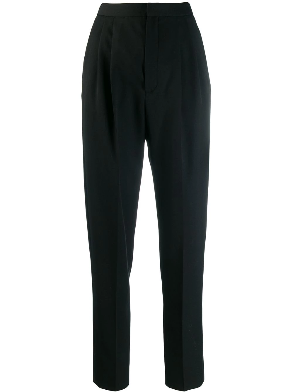 Walk into the office in style with these black cotton and virgin wool tapered tailored trousers from Saint Laurent. Designed with a high waist, they’ll keep an elegant look all day. Ready for the next meeting?
