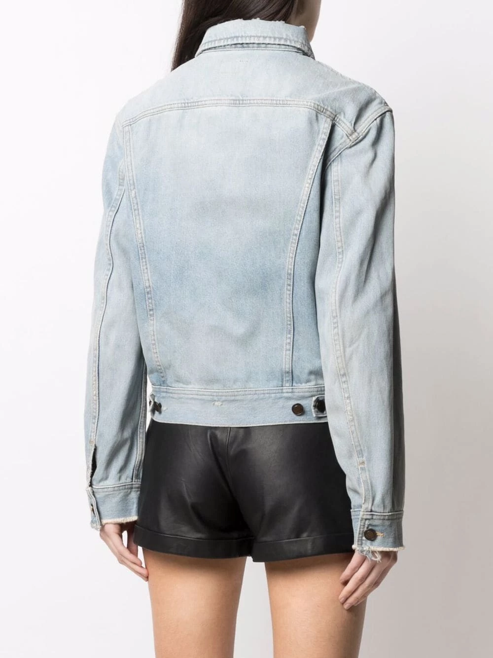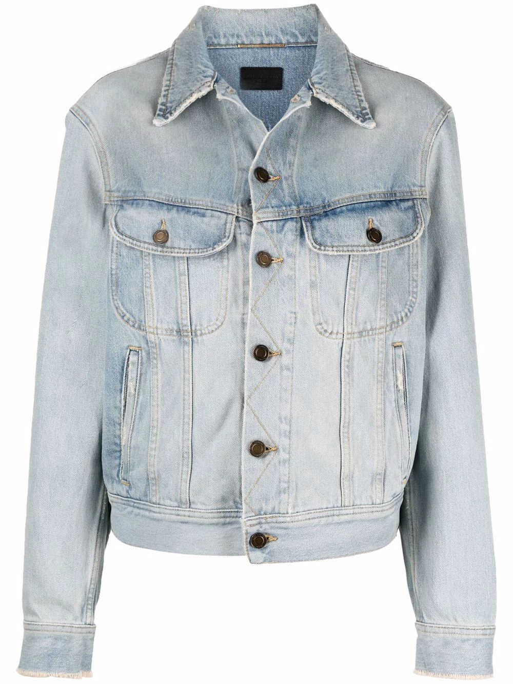Saint Laurent is synonymous with timeless style, and this denim jacket is proof of that. Constructed from 100% cotton, this layering piece comes in an ultra-wearable light blue hue. Note the fringed edge for an edgy twist.