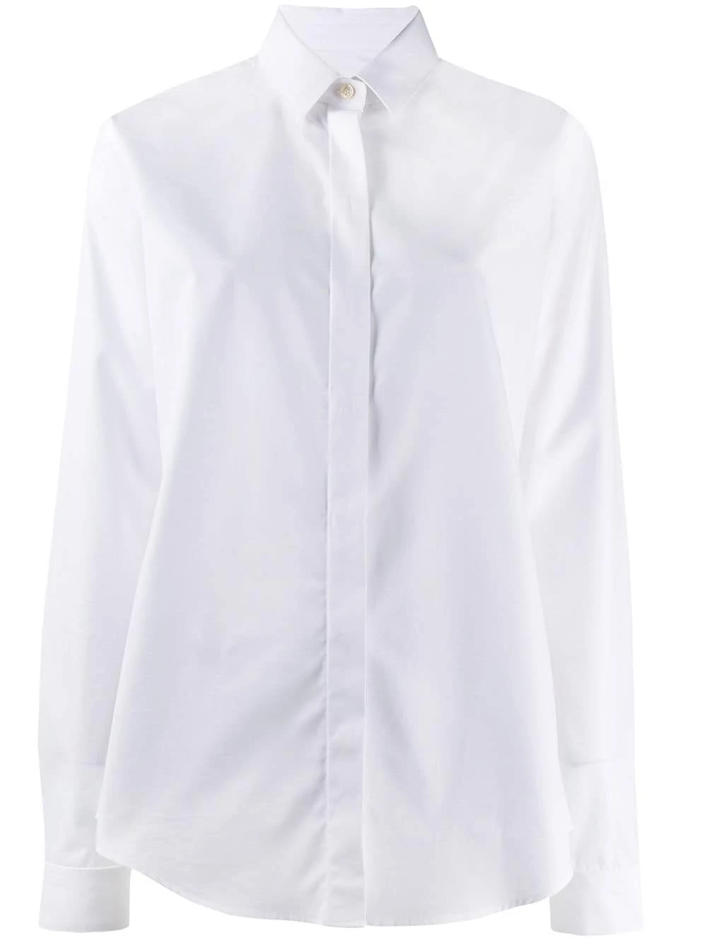 For the French-founded fashion house of Saint Laurent, it was in the archives that the latest collection came to fruition. Inspired by vintage Yves from the 60’s, 70’s and 80’s, every look could be traced back to the brand’s history and spoke of the label’s continued commitment to female empowerment, as shown by this white classic cotton shirt. Featuring long sleeves, a concealed front button placket, a button collar, button cuffs and a curved hemline.