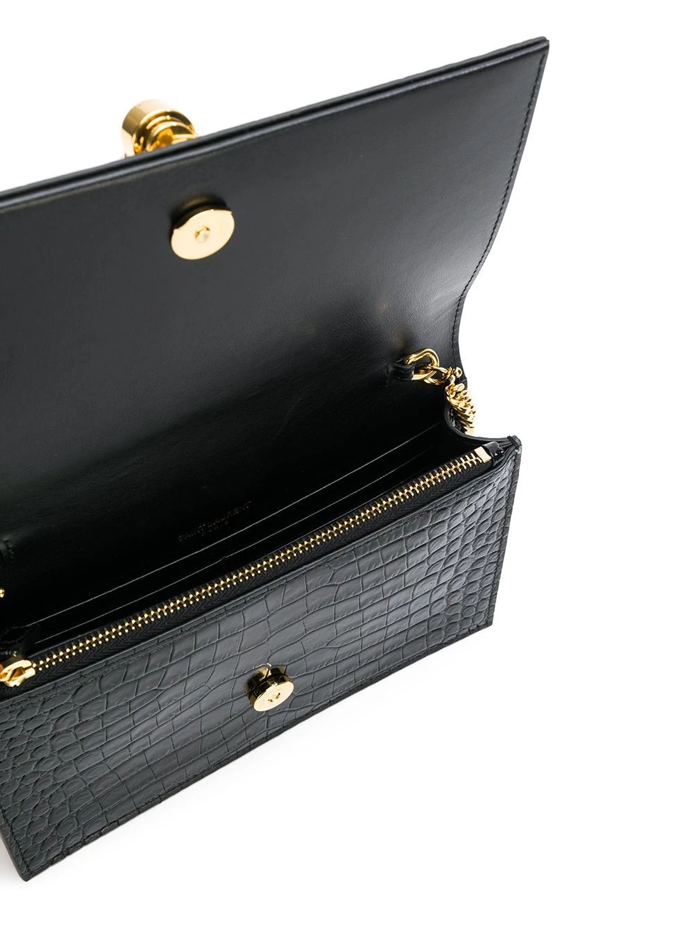Who’s Kate? Kate is that stylish girl who always gets style praises when wearing pieces like this black scale leather Kate Monogram tassel bag from Saint Laurent. Become Kate. Featuring a foldover top with magnetic closure, a gold-tone logo plaque, an internal concealed pocket, a hanging tassel and multiple interior card slots.