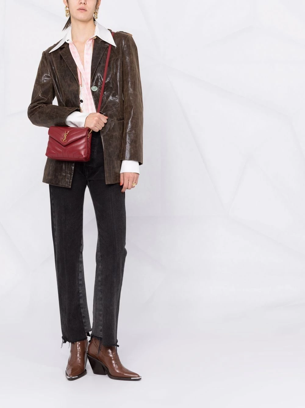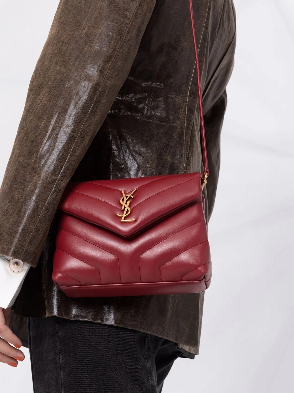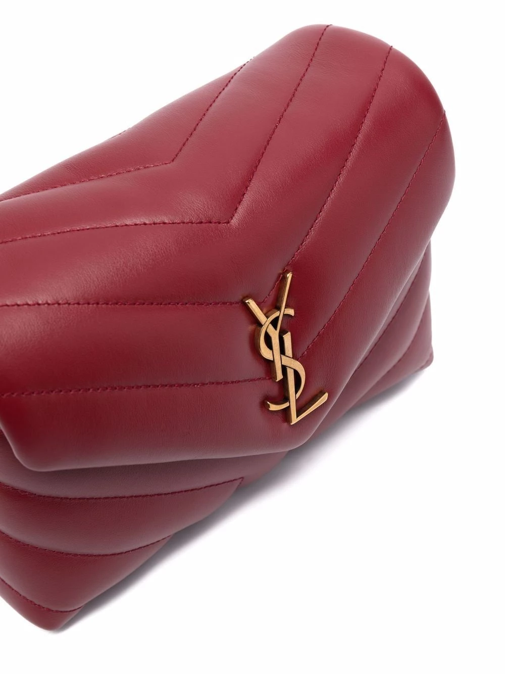 Saint Laurent’s monogram logo was created by graphic designer Cassandre in 1961. Now synonymous with the brand, it is featured in gold-tone hardware at the front of this clutch bag. Layered over chevron-quilt detailing, the sleek style of the house is showcased in this design.