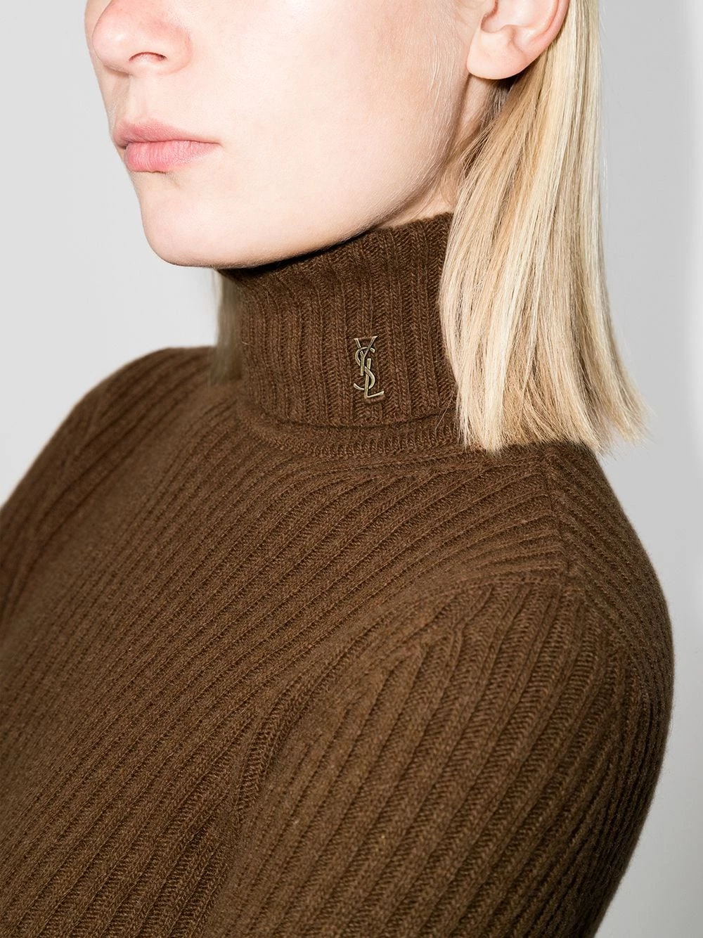 Spun from wool and cashmere with a ribbed-knit finish, this roll-neck jumper from Saint Laurent is finished with a small YSL logo plaque for a signature finish.