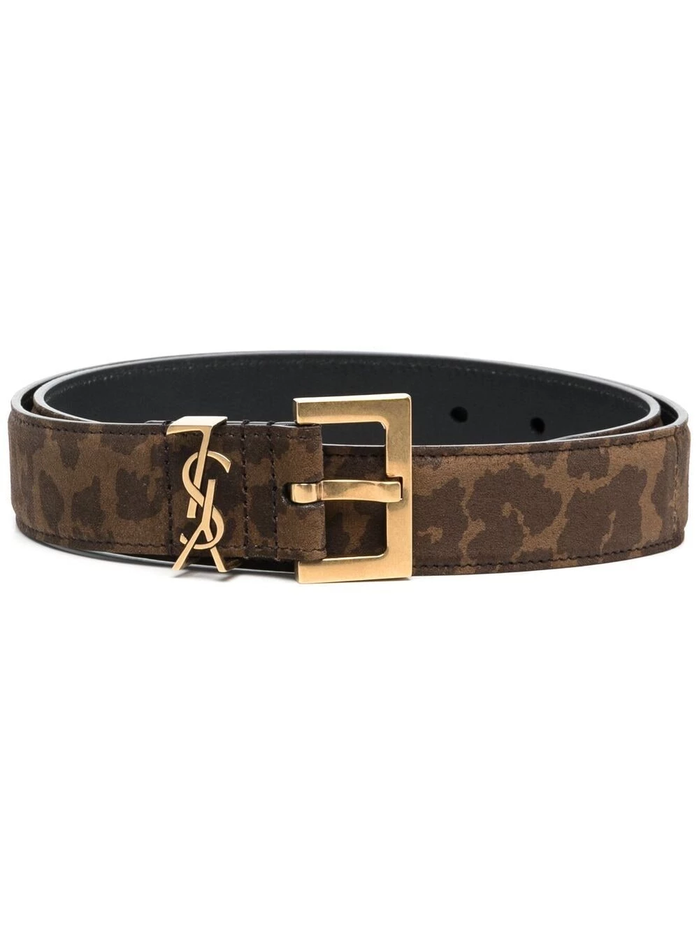 You’re dressed and ready to head out the door. But before you go, make sure you grab this animal-print monogram belt from Saint Laurent. Now your look is complete.