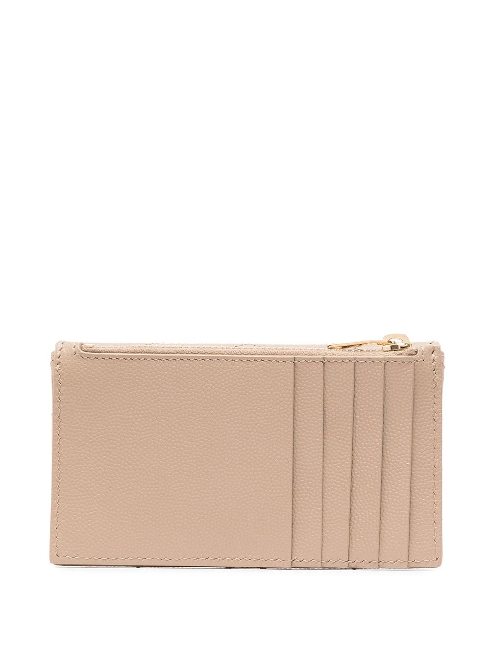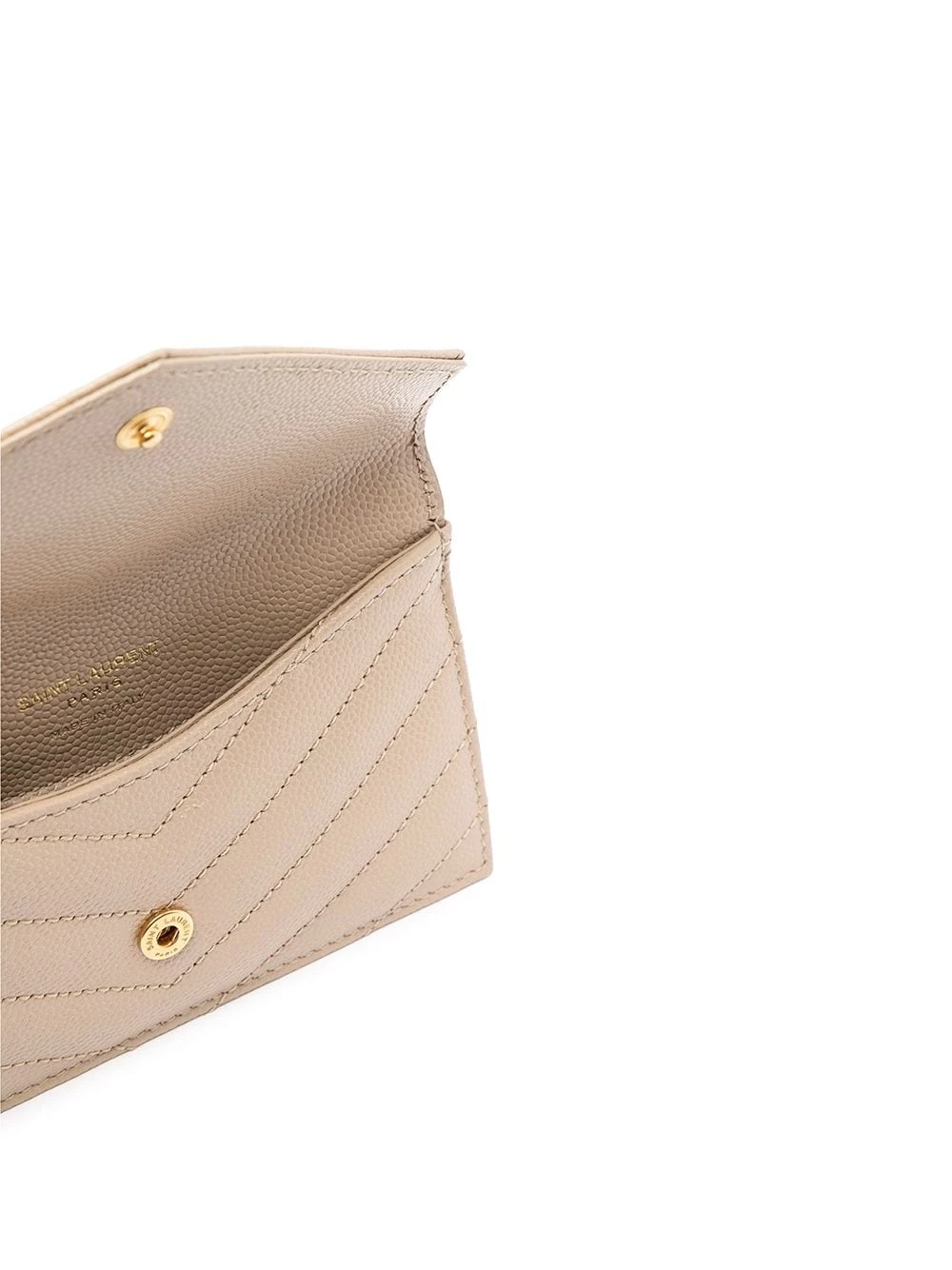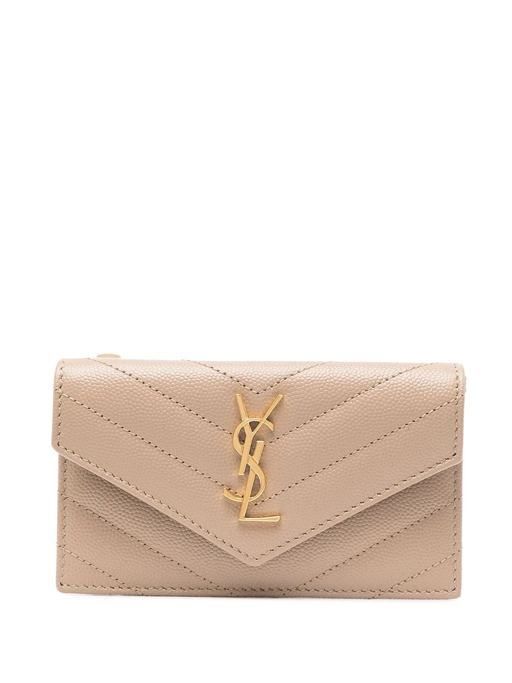 Make sure your most precious belongings are safely stored. Add this beige quilted pebbled leather wallet from Saint Laurent to your everyday choices and it will prove its worth. Matter sorted.