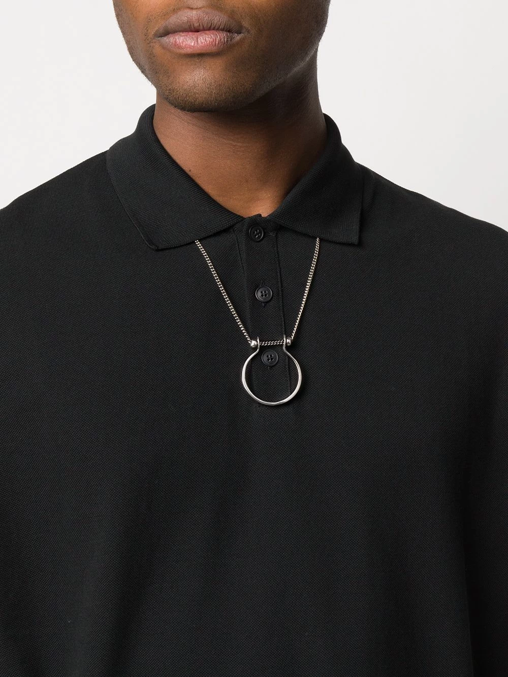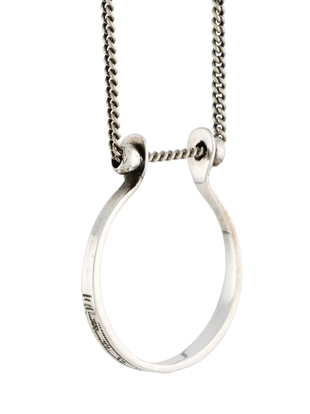 You know when you’re loving your look, and you can’t wait to get out and show it off…but it’s just missing that one thing? This ring pendant necklace from Saint Laurent is that one thing. Make it your signature piece. Featuring a lobster clasp closure, an engraved logo, a chain style, an adjustable fit, a silver-tone finish and a ring pendant.