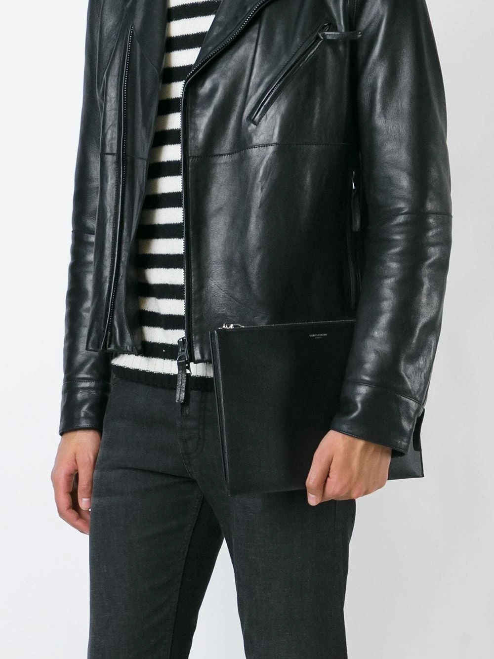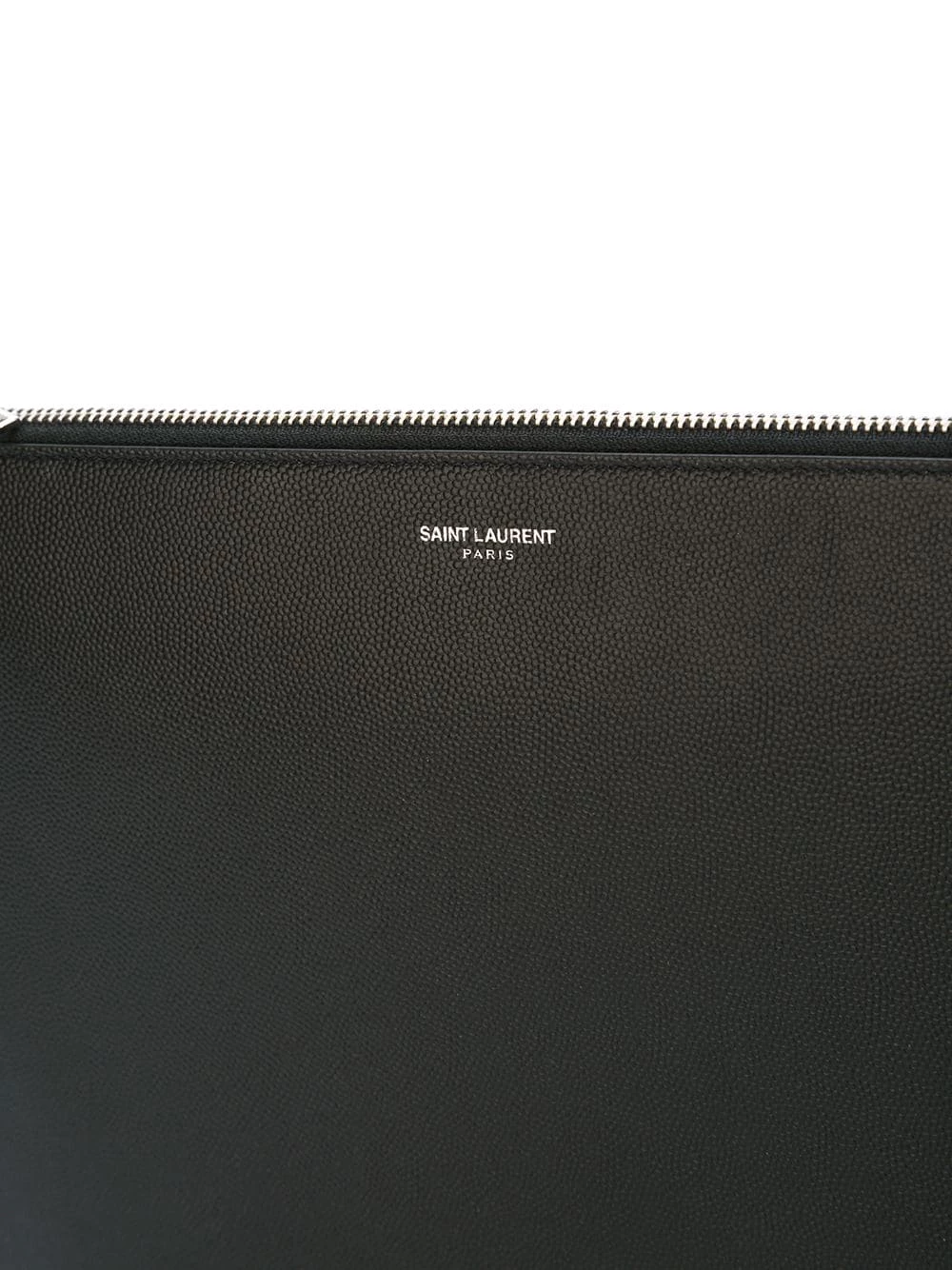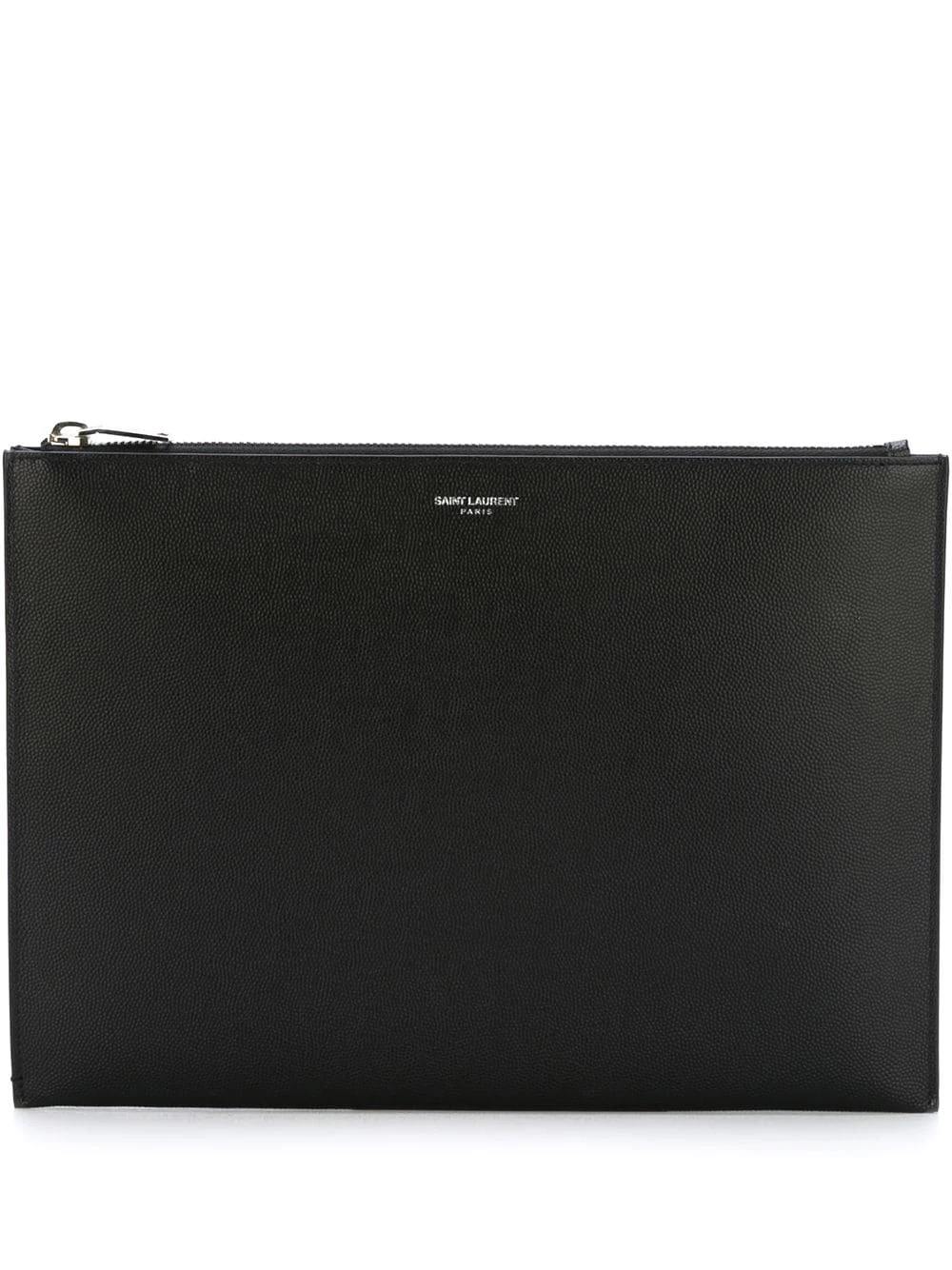 No need to keep stuffing your pockets. Crafted from leather, this black pouch from Saint Laurent is simply detailed with a silver-tone front centre logo stamp which gives it a subtle refined touch. the perfect accessory to carry your essentials around in style. Featuring a top zip closure, a main internal compartment, an internal logo patch and silver-tone hardware.