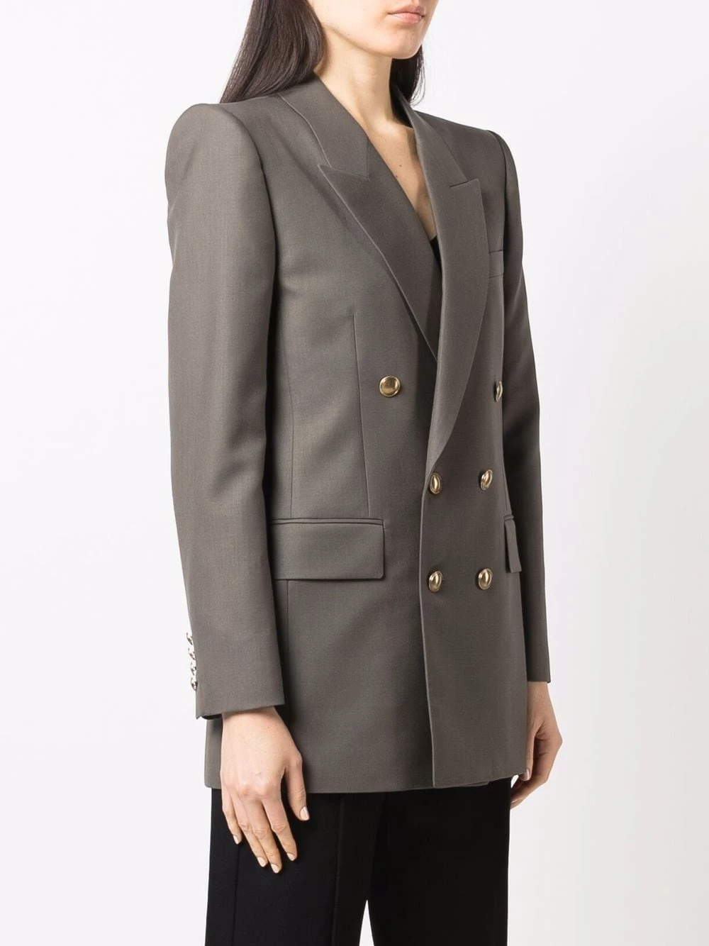 Tradition and refinery sit at the forefront of Saint Laurent’s brand ethos. Crafted from cool-brown virgin wool, this double-breasted jacket exemplifies the house’s supreme craftsmanship.