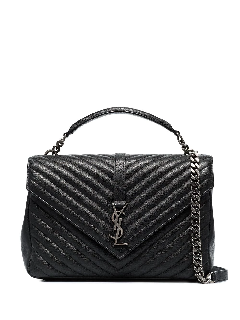 Whether you take it to an educational facility or not – this black leather large College tote from Saint Laurent will always remain stylish. But don’t feel bad if you’re not intending on learning anything new today – because you just did. Ahem. This tote is your new favourite of SS20. There, you see? Knowledge is power. Featuring metallic hardware, a top handle, a chain and leather strap, a front logo plaque, an envelope style, a foldover top with magnetic closure and a quilted design.