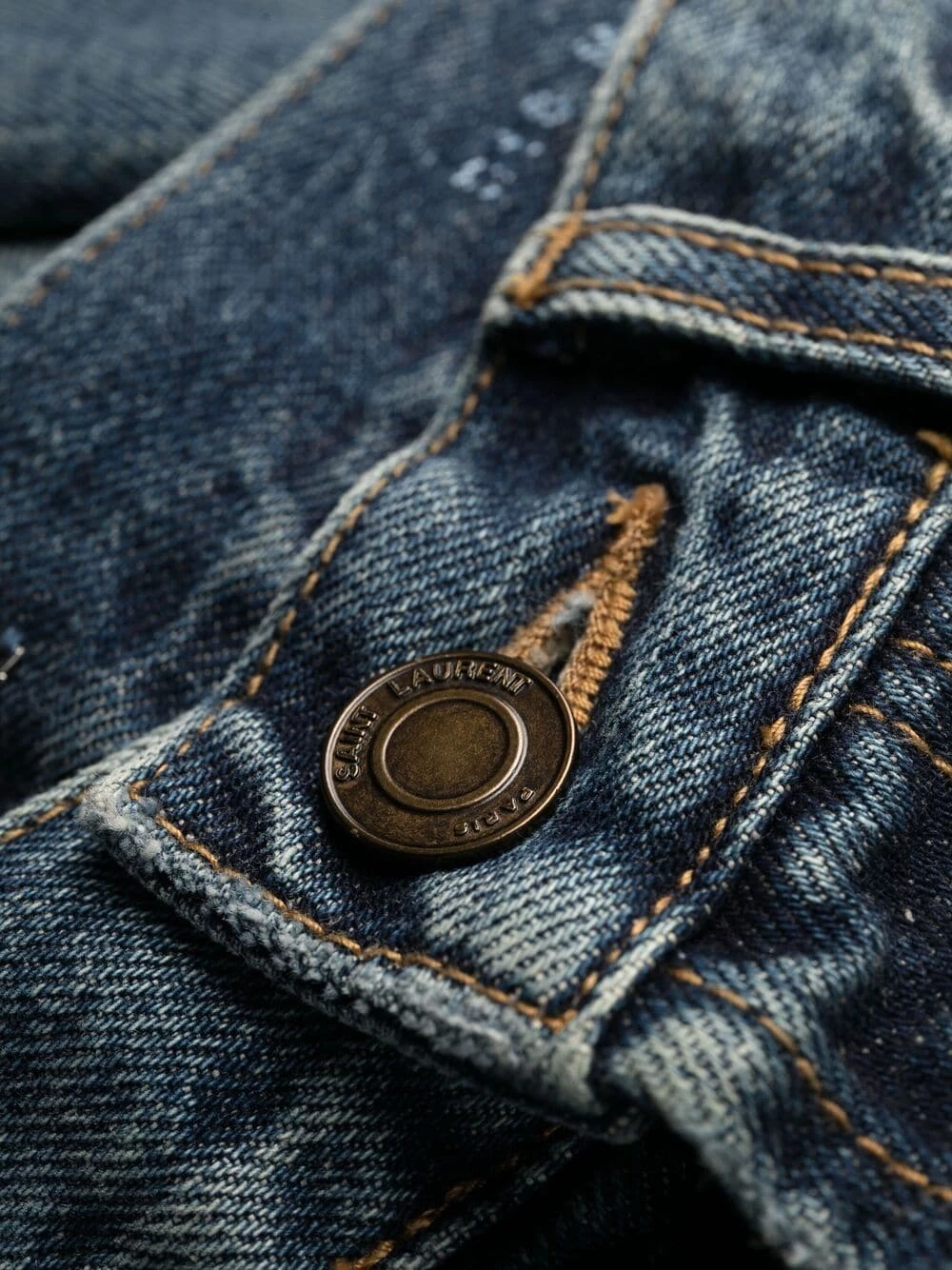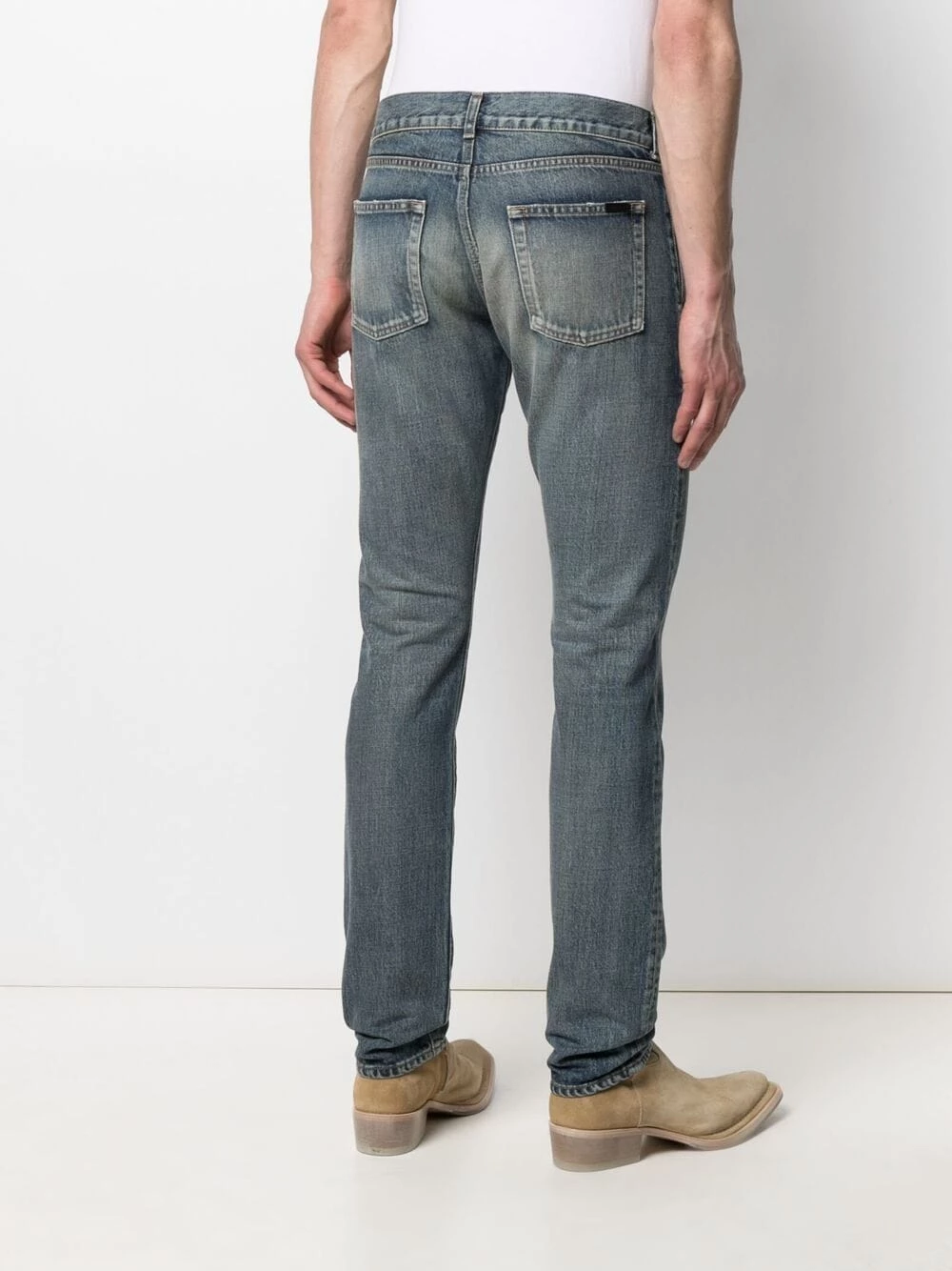A true RocknRolla, courtesy of Saint Laurent. Crafted from dirty sandy blue denim, these slim-fit jeans will add a rebellious touch to your outfit. Pair with charisma.