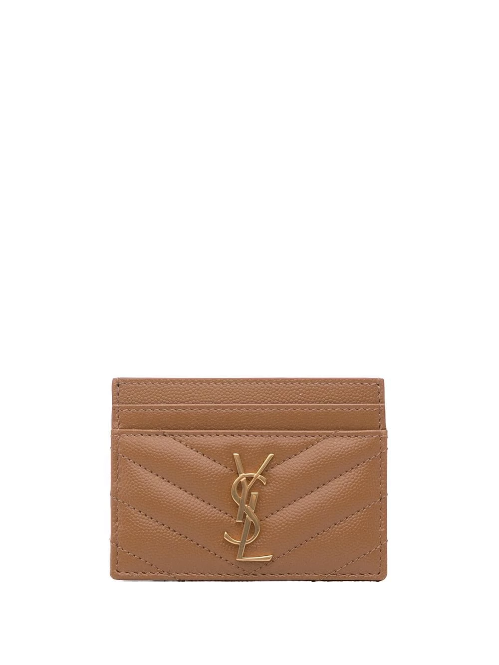Founded in 1961 by Yves Saint Laurent, whose initials became the brand’s iconic logo, Saint Laurent is the representation of the Parisian flair. Crafted from chevron-quilted leather in a dark brown hue and adorned with a gold-tone signature YSL plaque, this compact cardholder combines practicality and elegance.