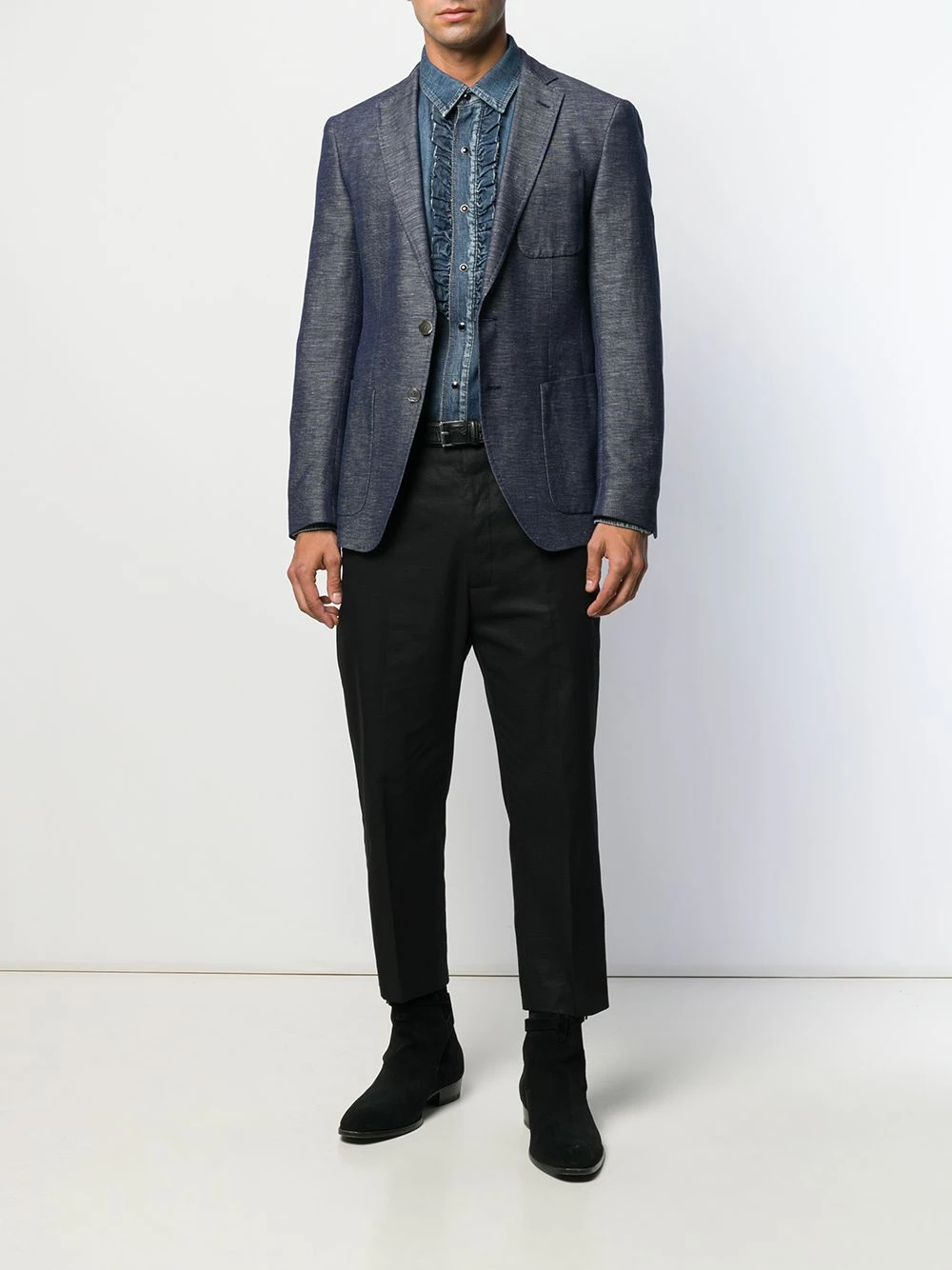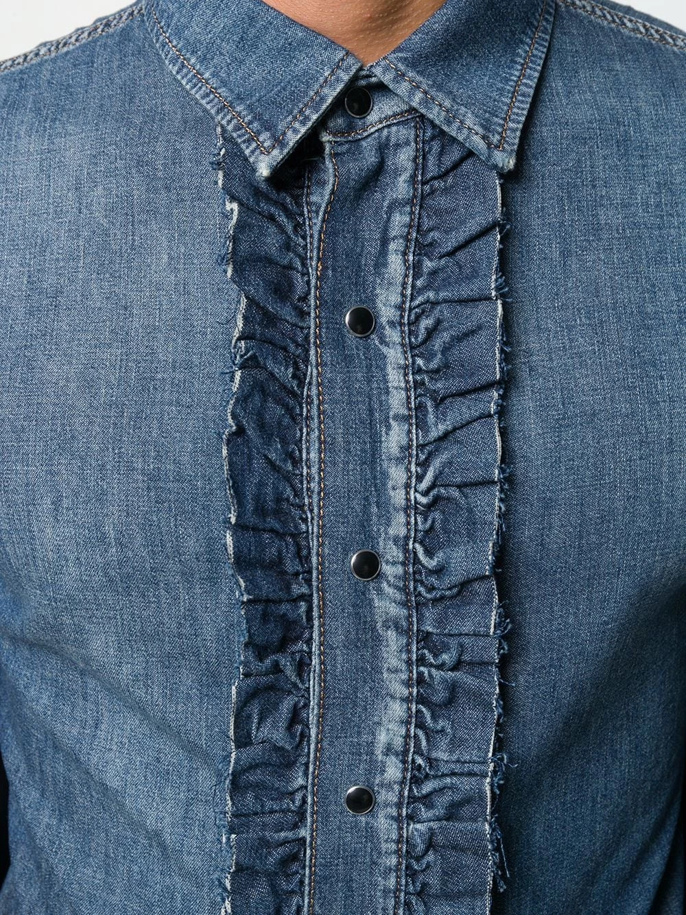 If there’s as essential that everyone should own, that essential is a denim shirt. Constructed from cotton, this ruffle detail denim shirt from Saint Laurent proves that you need that essential but with a twist. Ruffles are not just for girls, you can rock them too.ย