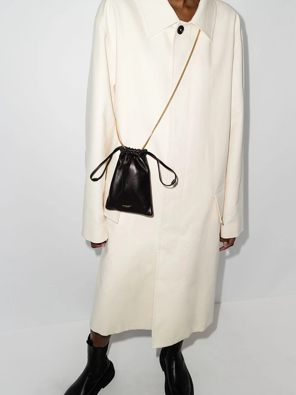 Luxuriously crafted in Italy from smooth leather, the Paris pouch is part of Saint Laurent’s AW21 and embodies the House’s appreciation for a modern approach to traditional craftsmanship. With a drawstring fastening at the top and finished with refined gold-tone hardware, this practical accessory features an adjustable chain-link strap that allows it to be worn crossbody style or on the shoulder.