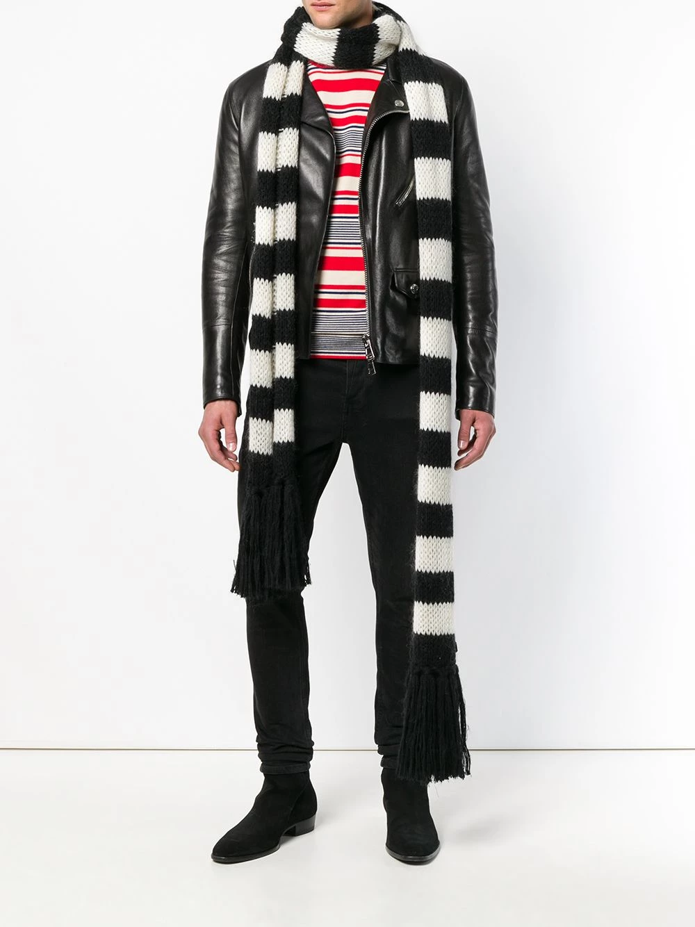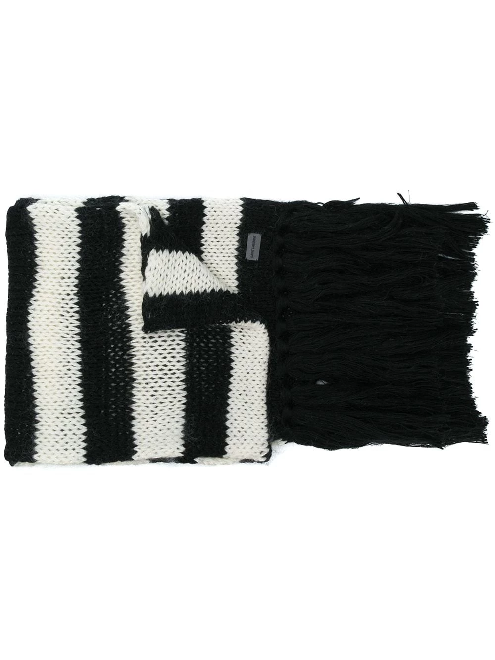 Synonymous with youth and modernity, luxury fashion house Saint Laurent was originally founded in 1961 by iconic French couturier Yves Saint Laurent. Today, the label runs under the creative direction of Anthony Vaccarello who continues to champion the brand’s core values. Crafted in Italy from a black and white striped wool-mohair blend, this scarf from Saint Laurent’s AW18 collection features a chunky knit and tassel-trimmed edges.