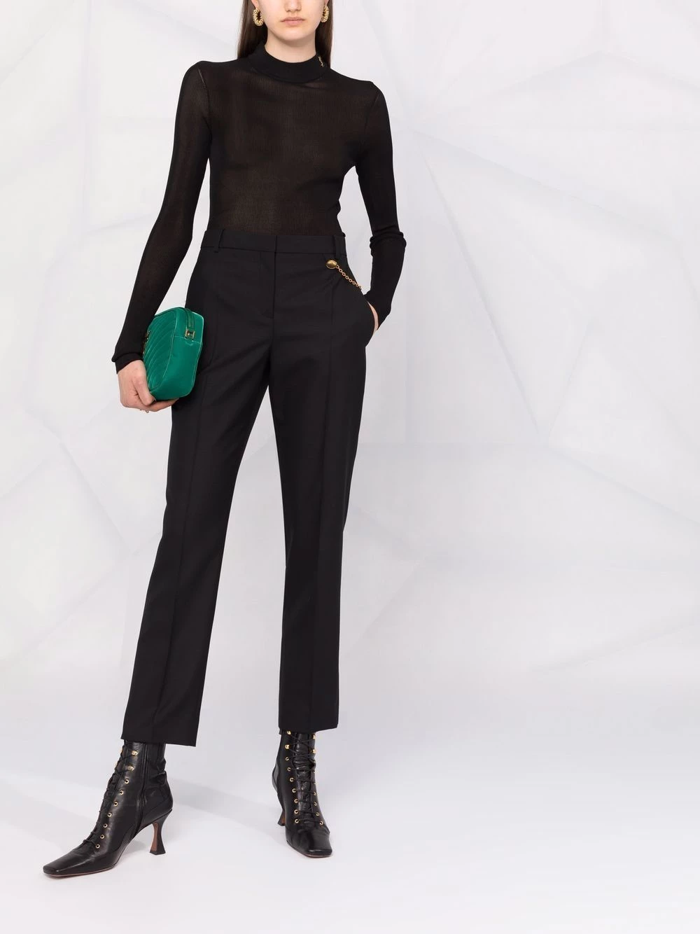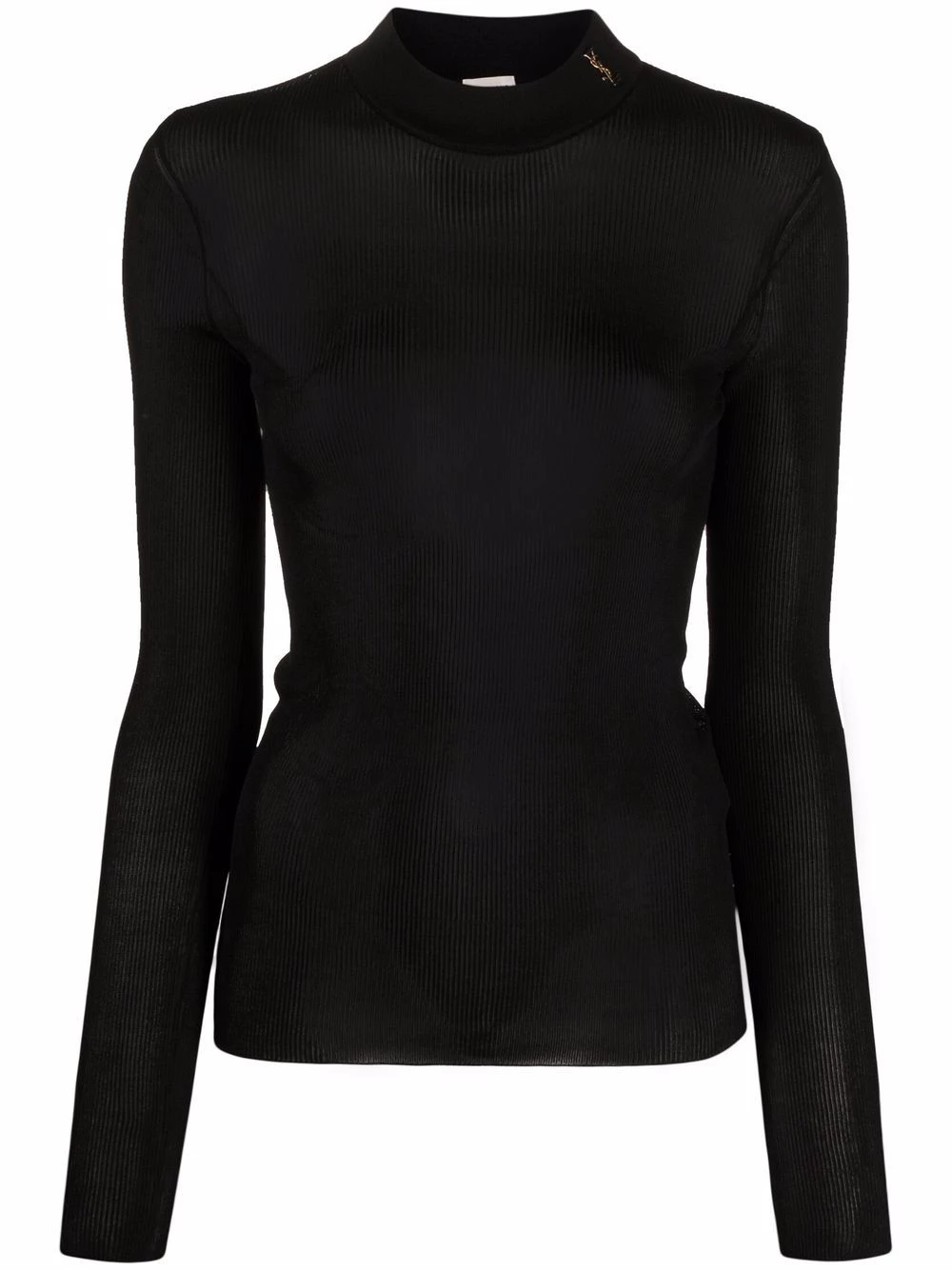 Yves Saint Laurent’s initials can found throughout the entire Maison’s collections. In gold-tone hardware, it is showcased at this jumper’s mock neck.