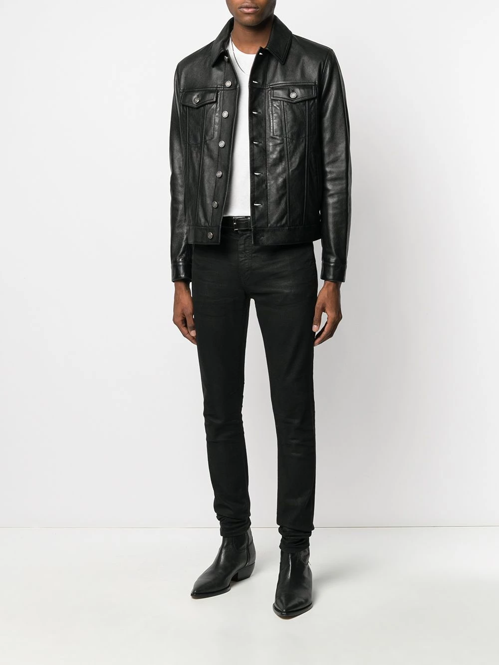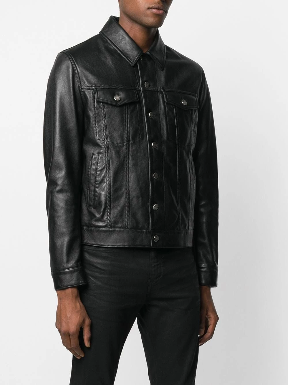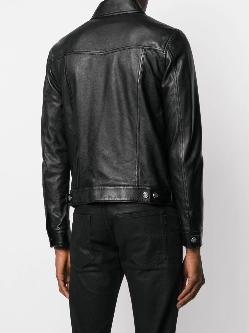 They say it’s what’s inside that counts. Well, not when it comes to Saint Laurent. Constructed from lambskin, this black jacket shows that the outside is just as important. Button up, and you’ll see what we mean.