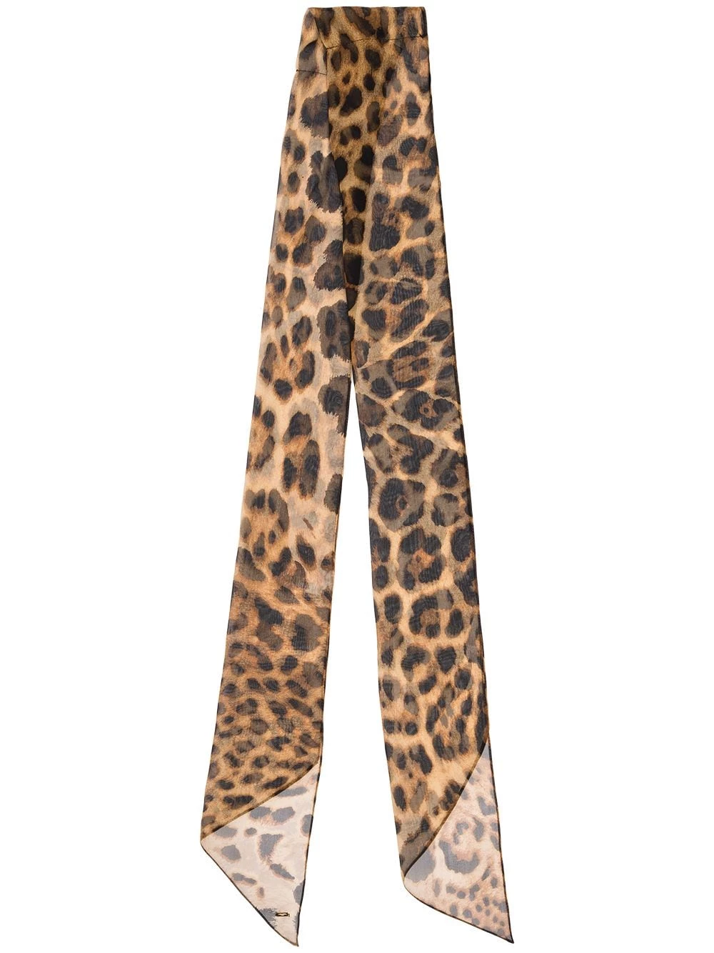 Saint Laurent’s scarf will instantly boost your outfit, whether it’s jeans and a tee or an evening dress. It’s cut from wispy silk-chiffon patterned with leopard spots and has sleek slanted edges. Wild thing.