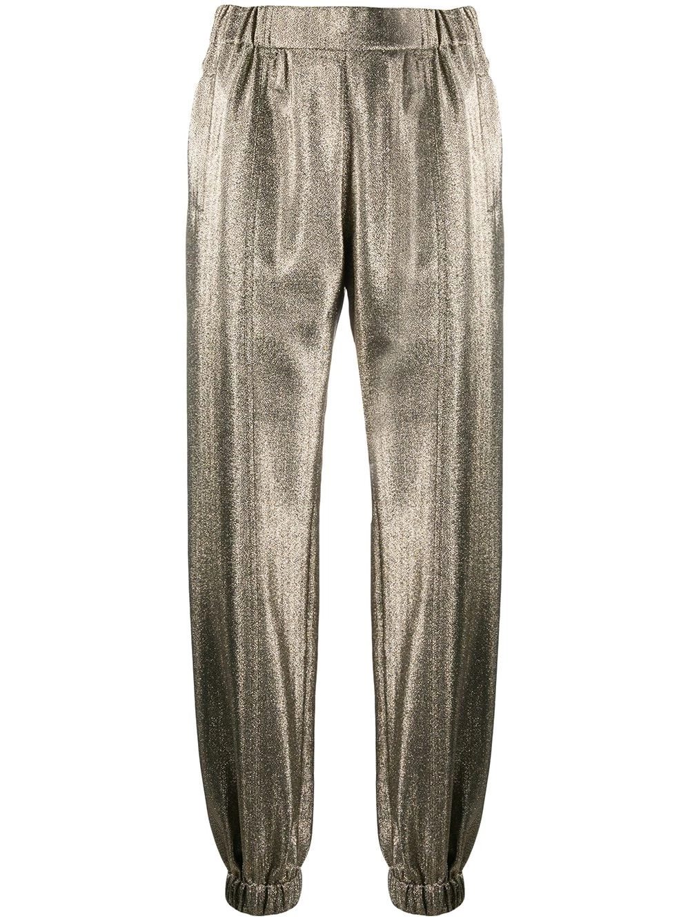 Some say that not all that glitters is gold. But they’re so wrong. We truly believe that anyone wearing these gold-tone silk-blend metallic-effect tapered trousers from Saint Laurent will strike gold – or at least gold-tone. Keep digging and you’ll get there. Featuring an elasticated waistband, front welt pockets, a tapered leg, elasticated cuffs and a regular length.