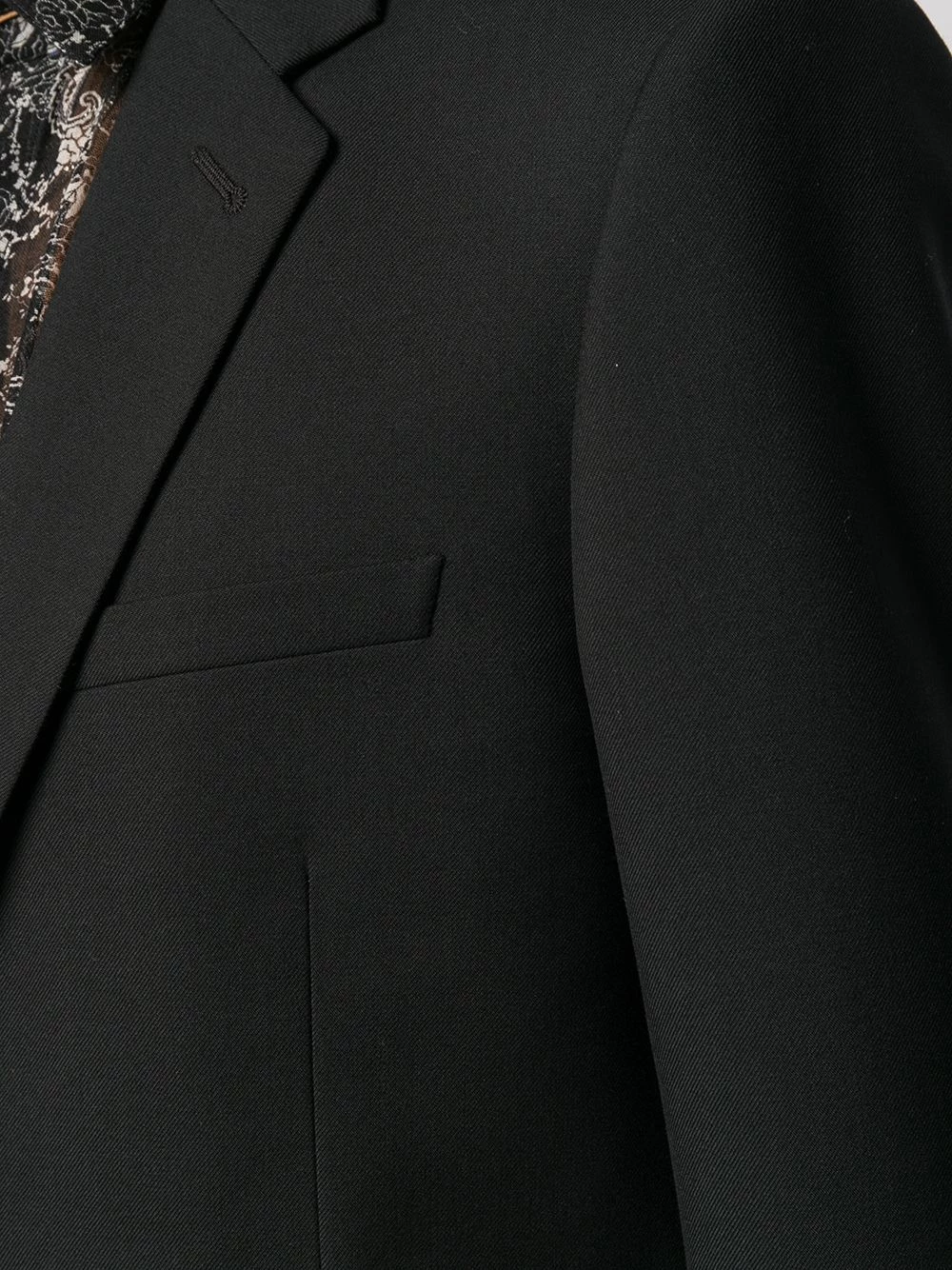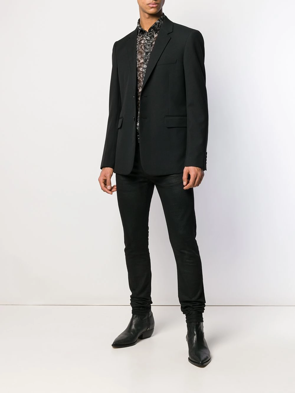 Astute tailoring is the lifeblood of French fashion house Saint Laurent, this single-breasted blazer crafted in Italy from a premium material palette of pure wool, cotton and silk. The slim fitting design features notched lapels, a front button fastening, long sleeves, button cuffs, a broad welt chest pocket, front welt pockets, darts at the waist, a rear central vent and a full lining.