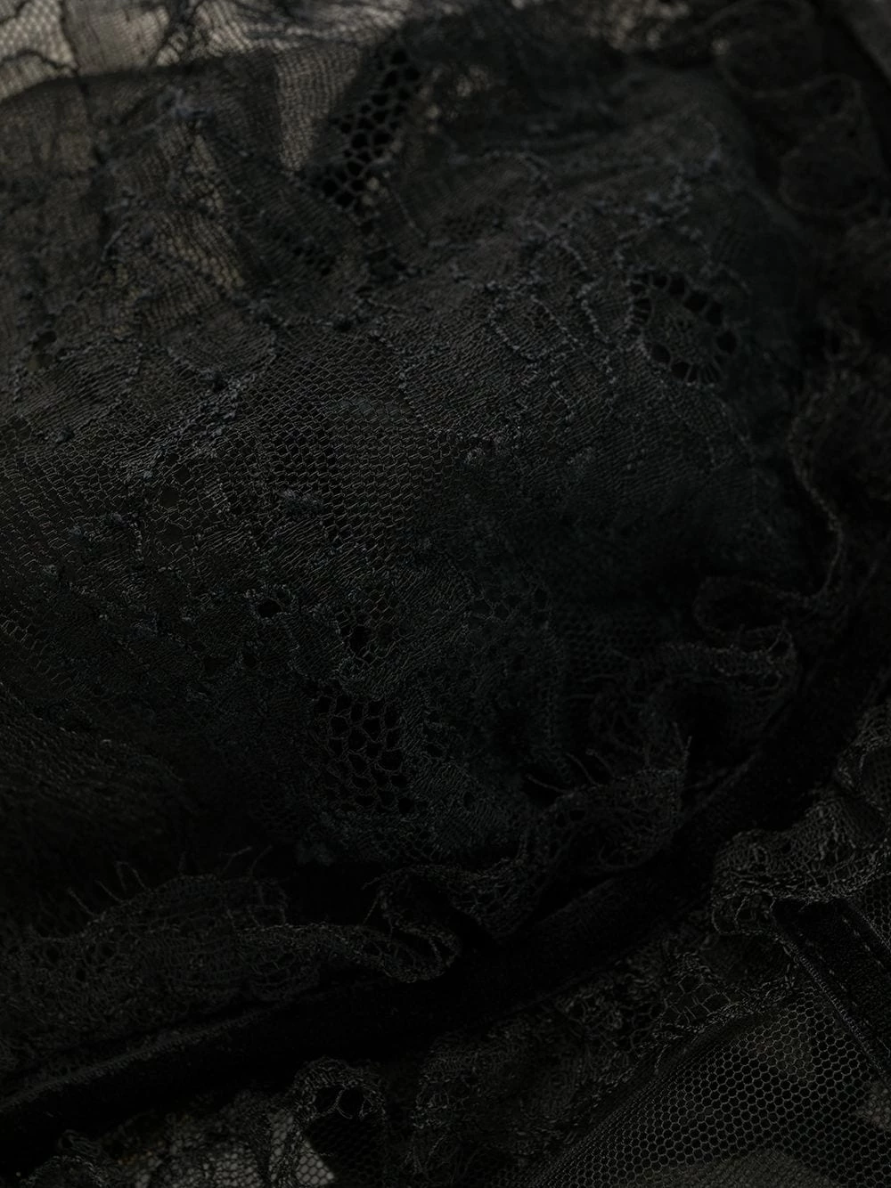 Delicate and sweet. Make sure what’s underneath makes you feel great, like this black lace one-piece bodysuit from Saint Laurent. Daring and alluring.