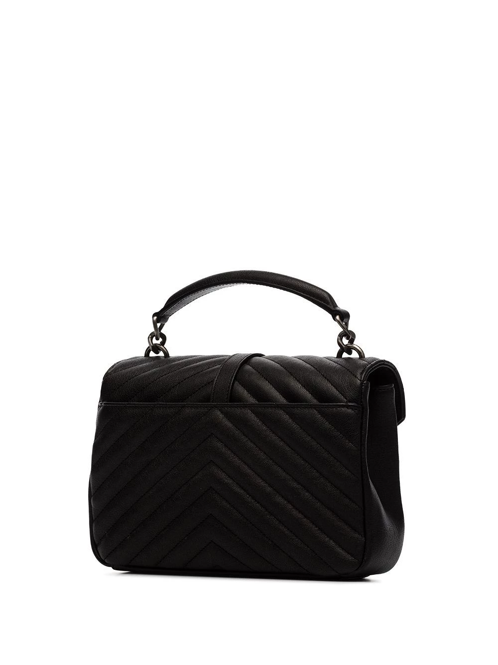 Undoubtedly, a necessary style. From casual to classic, this black lambskin medium College shoulder bag from Saint Laurent is ready to upgrade any look. Stylish and super versatile. Featuring a flat top handle, a chain shoulder strap, silver-tone hardware, a front logo plaque, an envelope style, a back slip pocket, a foldover top with magnetic closure, a main internal compartment, a full lining, an internal zipped pocket, an internal slip pocket and an internal logo plaque.