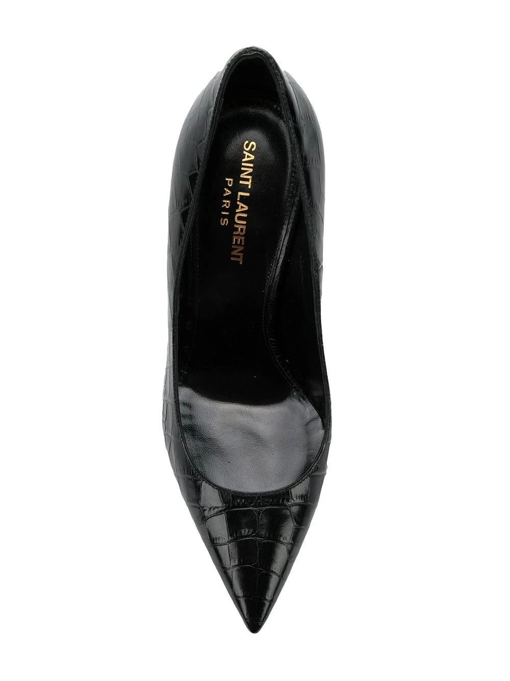 Fancy going for an iconic style? Introducing these crocodile-effect Opyum pumps from Saint Laurent. Add a glamorous touch. Featuring an embossed crocodile effect, a branded insole, a pointed toe, a slip-on style and a YSL high-heel.