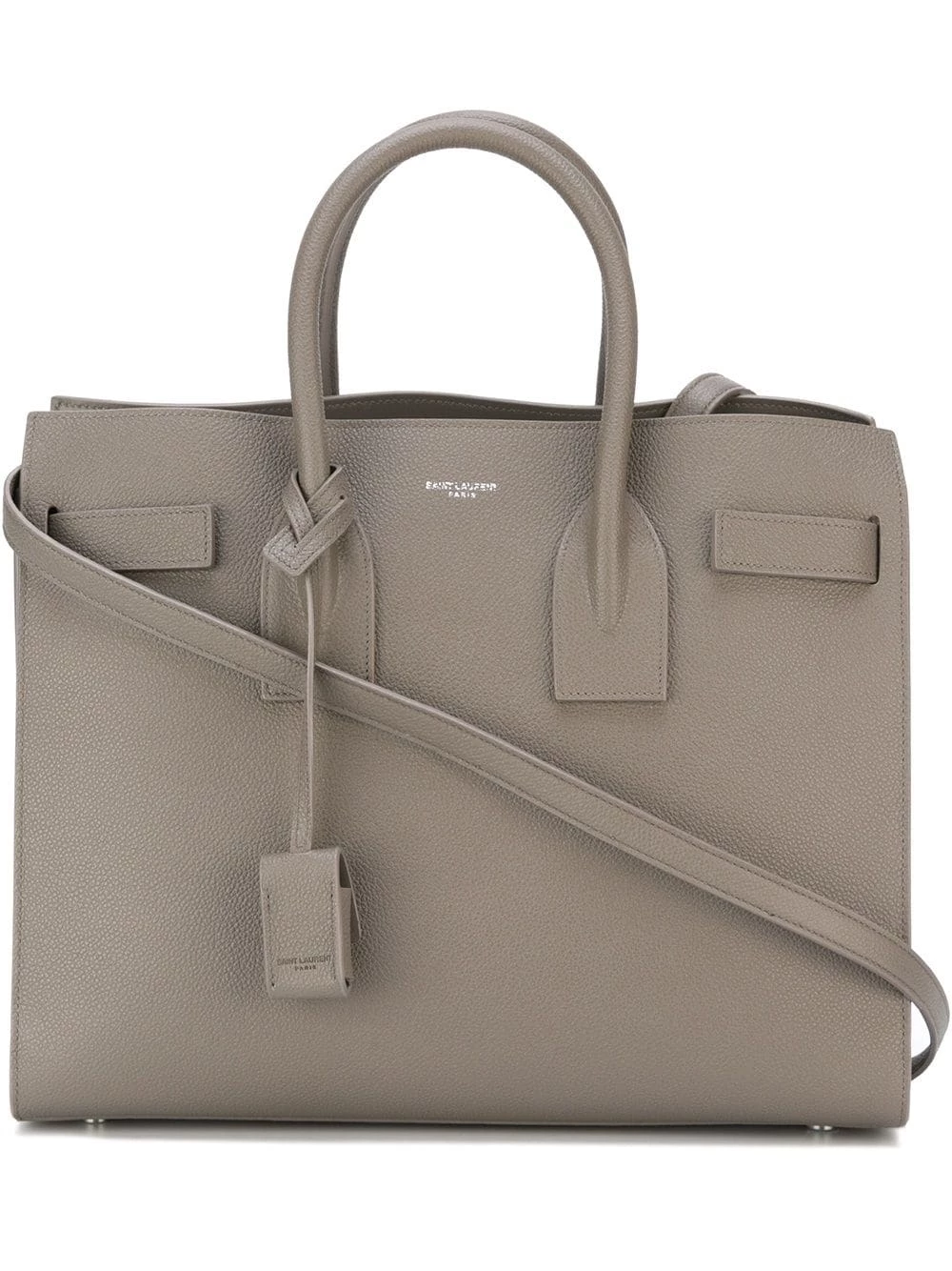 A bag that can carry the world, your world? Yes it is possible. Constructed from calf leather, this small Sac de Jour tote bag from Saint Laurent can carry from your essentials to your groceries. Go big or go home. Featuring a rectangular body, an open top design, round top handles, a hanging leather tag, a detachable and adjustable shoulder strap, accordion details at sides, an embossed logo and an internal zipped pocket.
