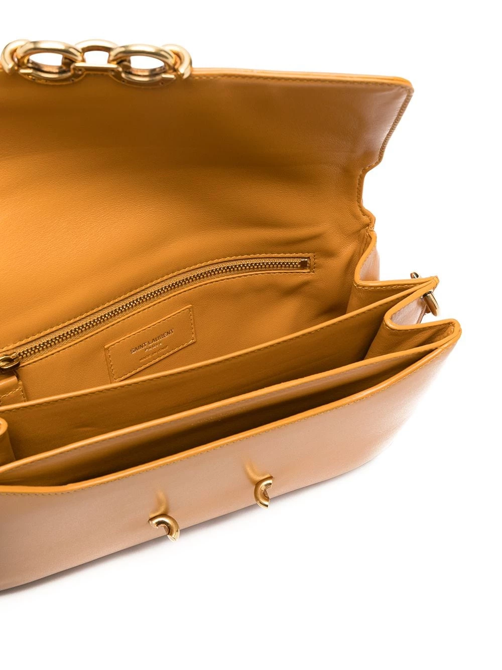 Saint Laurent offers this sleek chain-detail crossbody bag for the Autumn-Winter 2021 collection. Boasting gold-tone chain-detailing and a front flap closure, this accessory has been made with high-quality craftsmanship.