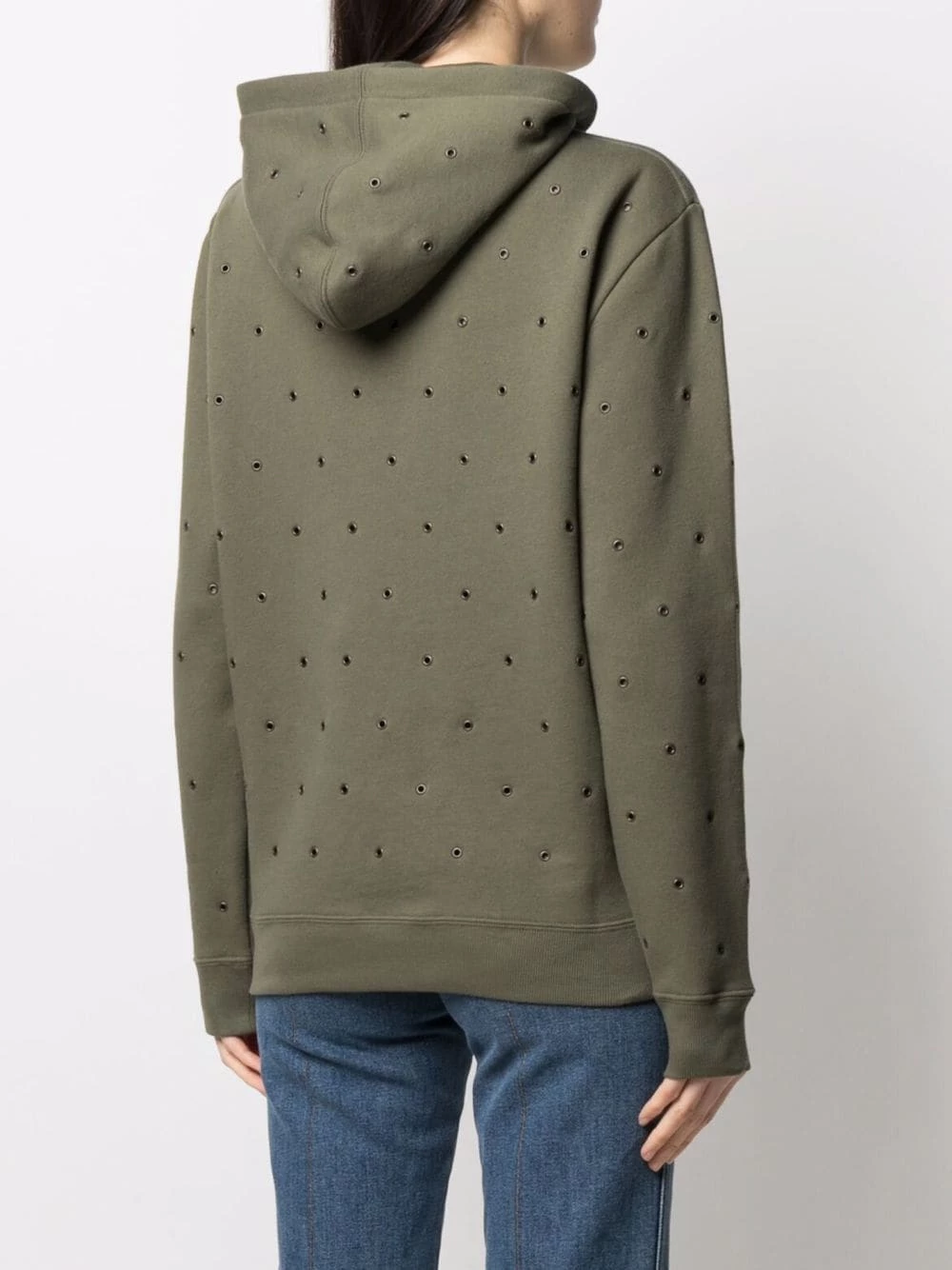 It’s all about the hardware. Finished with all-over eyelet detailing, this green cotton hoodie from Saint Laurent will become your new favourite piece. How about that detail?