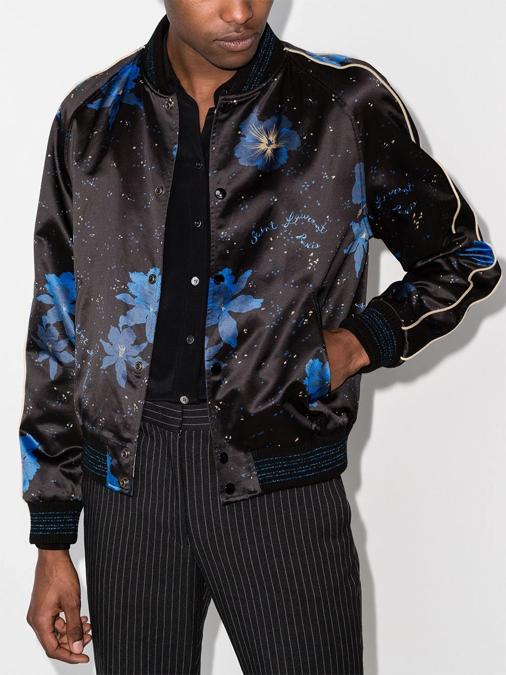In dire need to add a special touch to your outfit today? This floral print bomber jacket from Saint Laurent comes to mind pretty quickly. You certainly won’t go wrong with it.