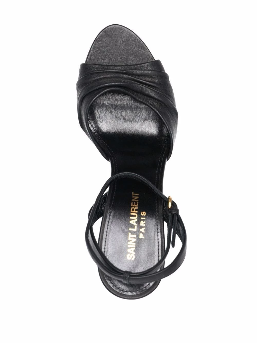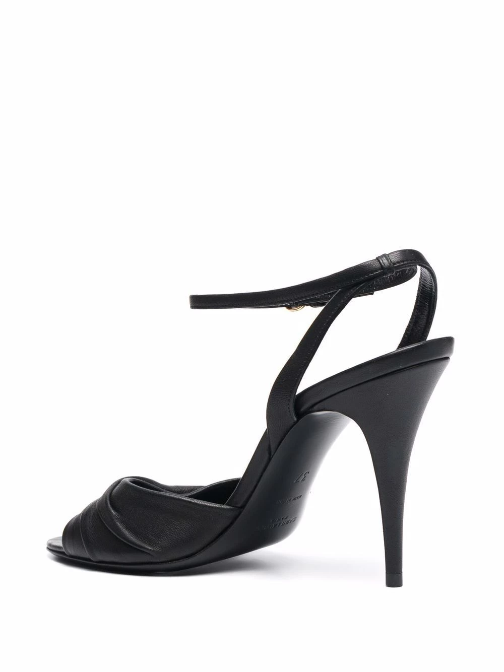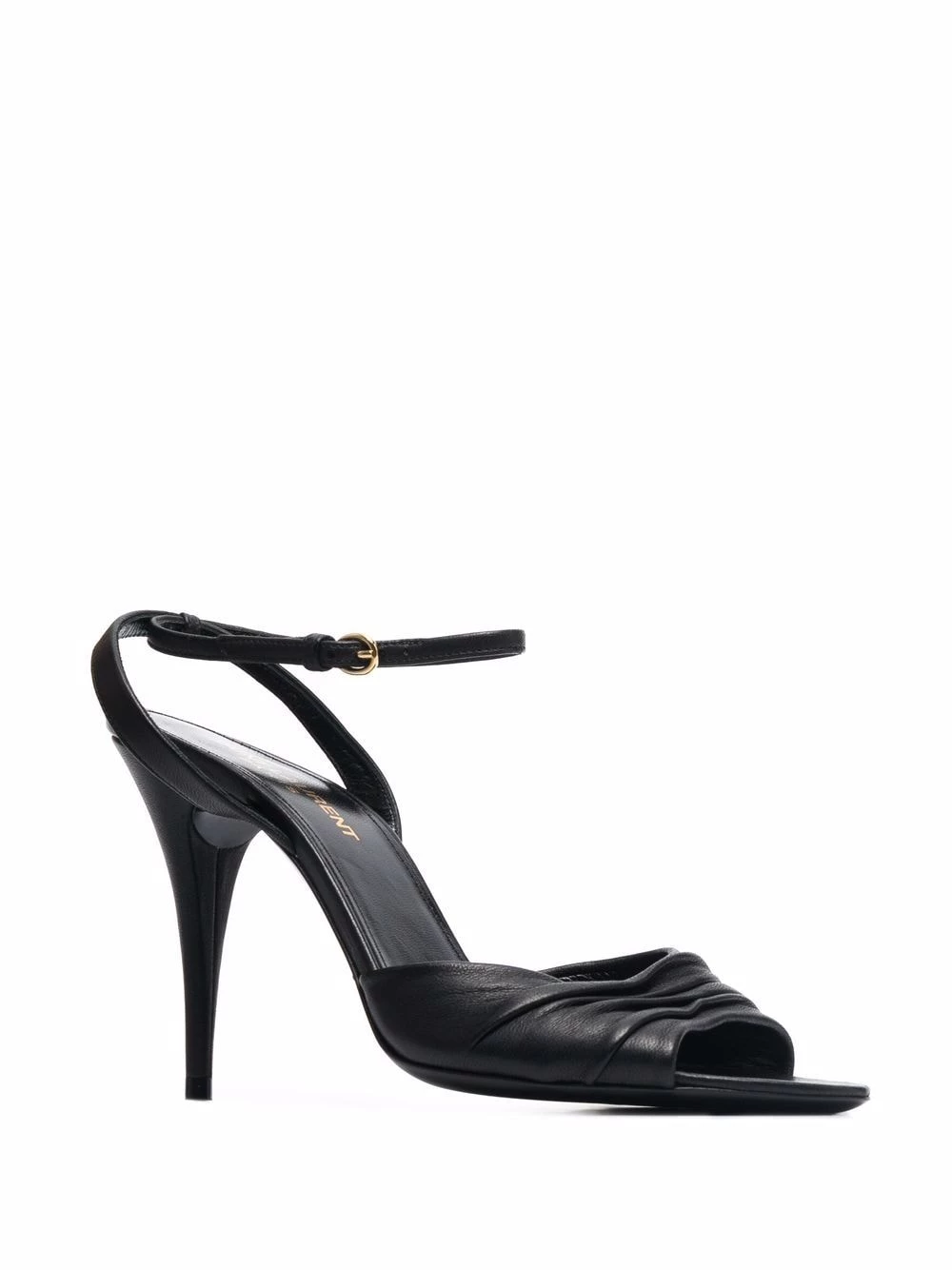 Saint Laurent does timeless well, and these open-toe sandals are proof of that. With a sleek and elegant silhouette that is synonymous with the brand, they feature a ruched detailing on the foot, an ankle-strap fastening and contrasting gold logo print on the insole.ย