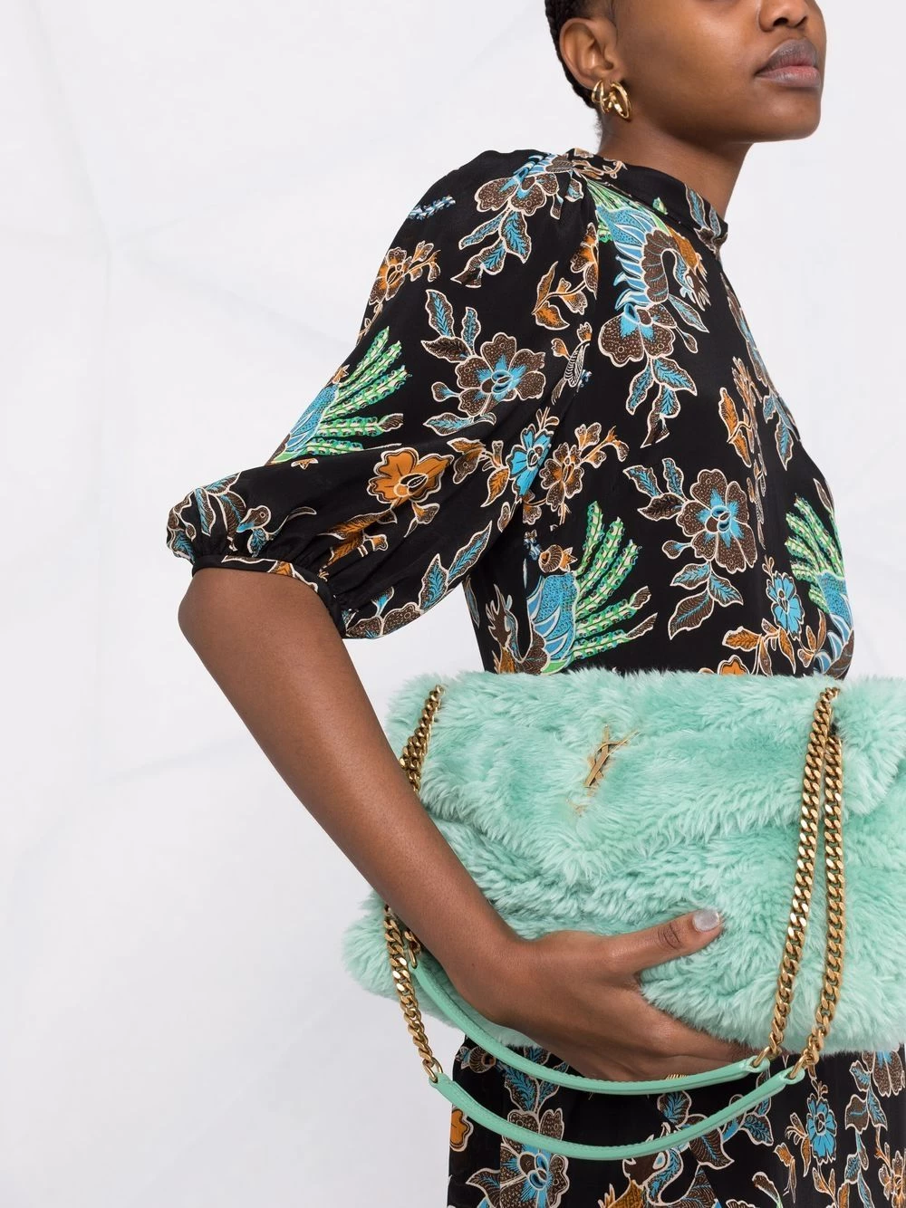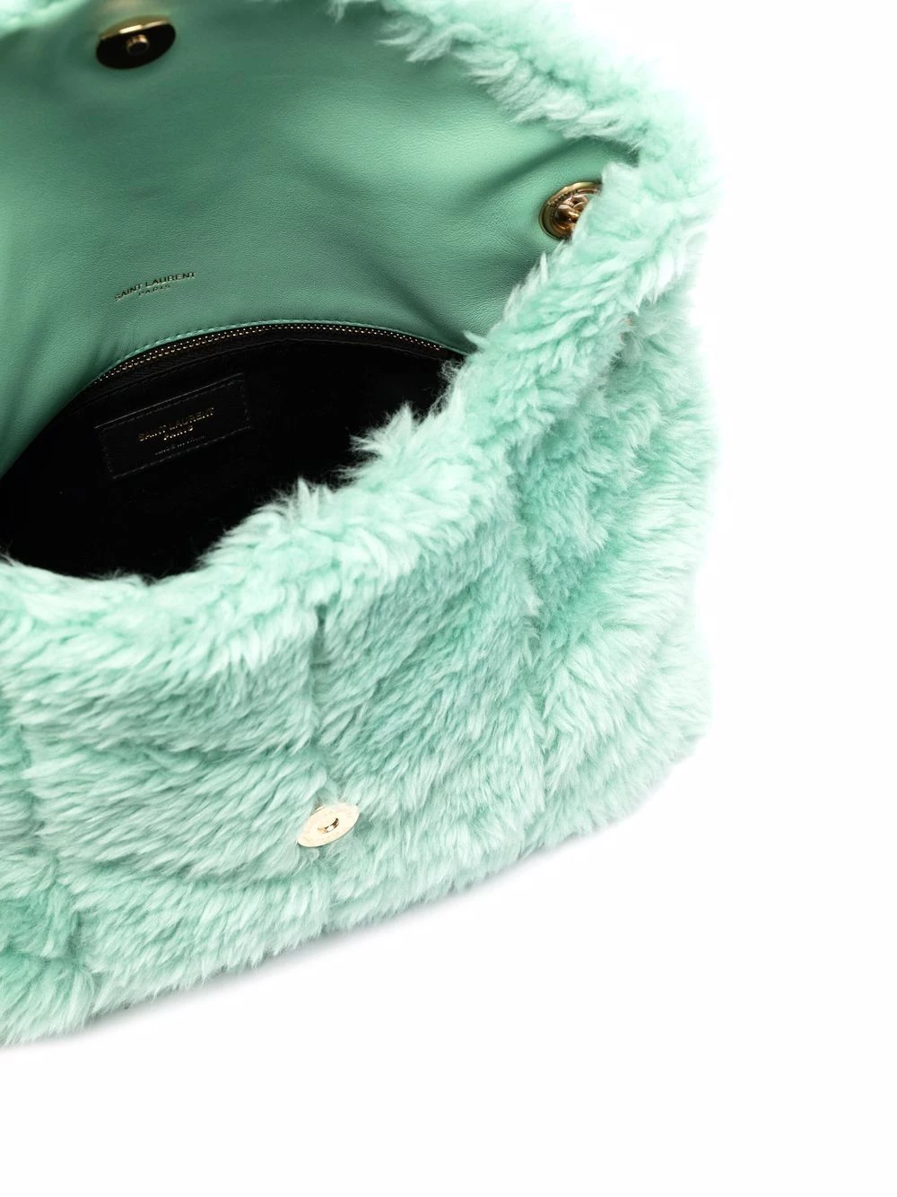 Boasting a quilted shearling construction, this small Loulou Puffer bag showcases Saint Laurent’s playful side. Realised in a green hue, this accessory is detailed with a gold-tone YSL monogram plaque and can be carried using the chain-link and leather strap.