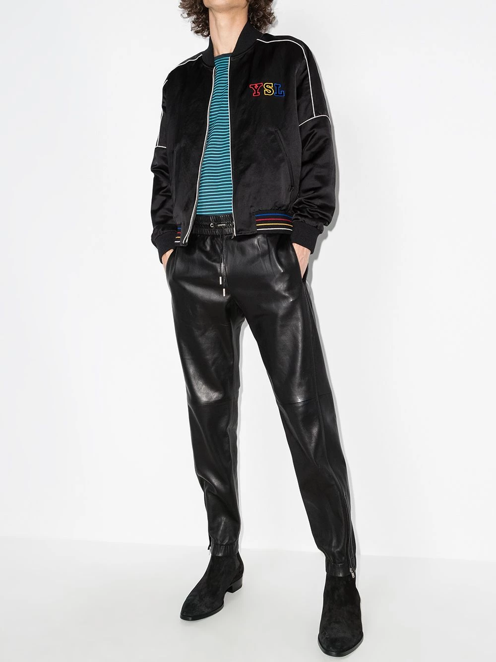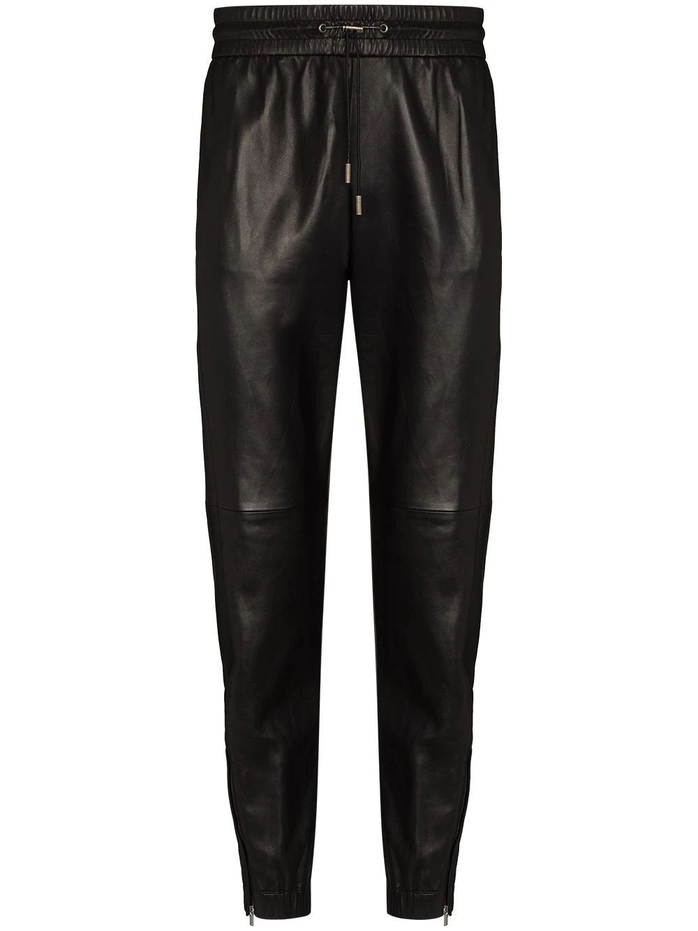Playing with the concepts of formal and casual, Saint Laurent includes these leather track pants in its AW21 collection. Cut for a tapered fit, they fasten at the waist with a drawstring and are given an edgy look thanks to zip-details at the ankles.