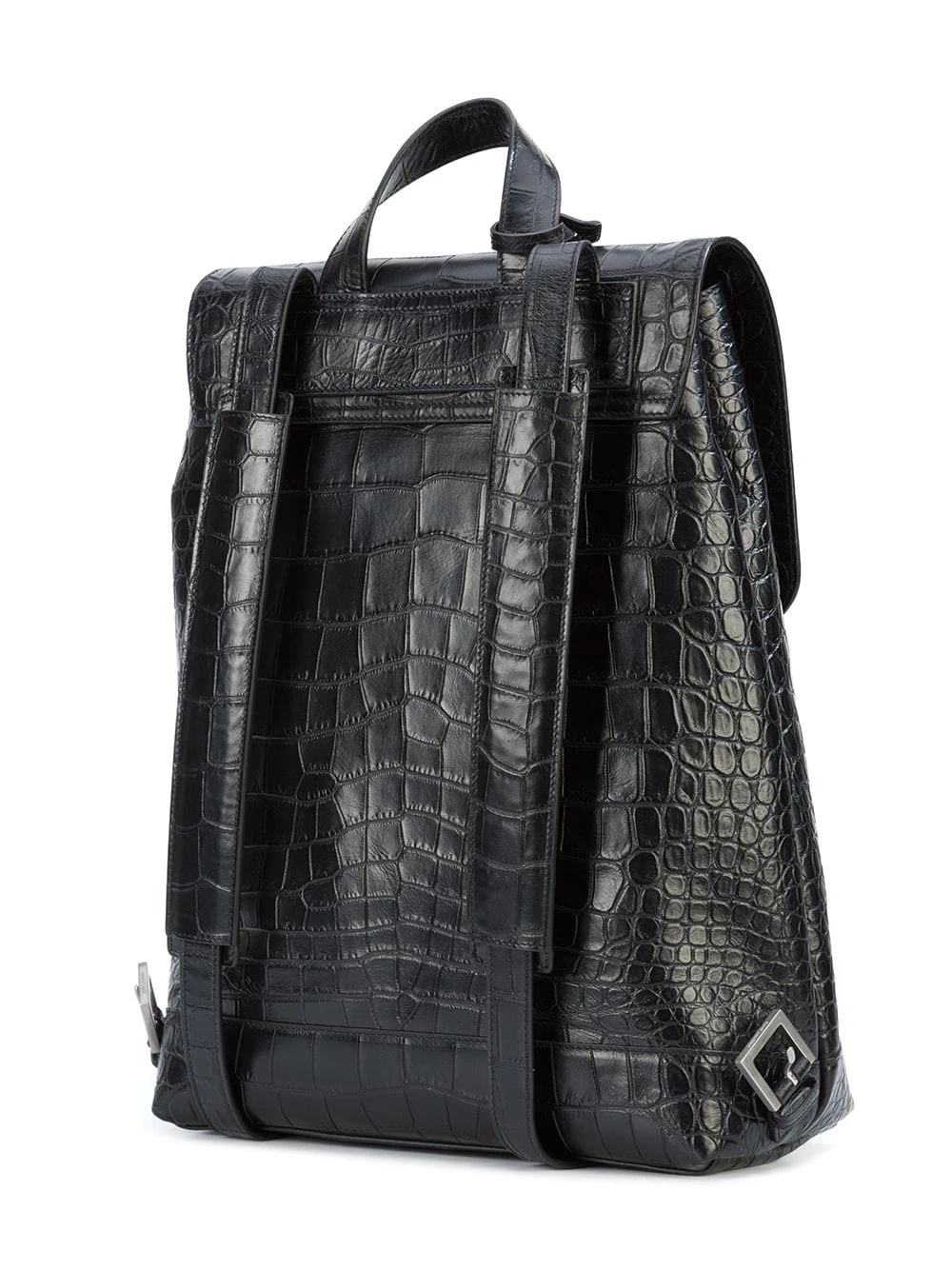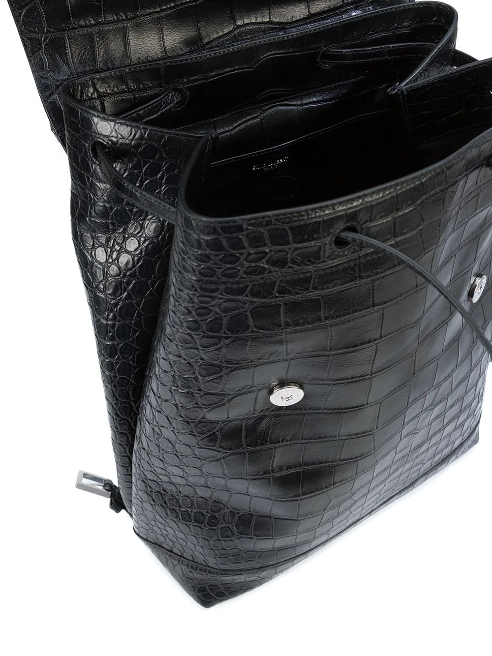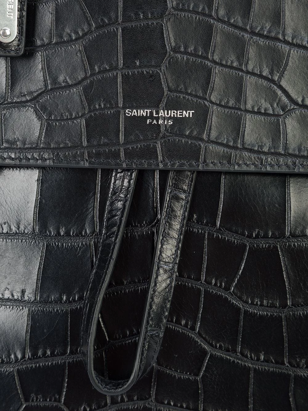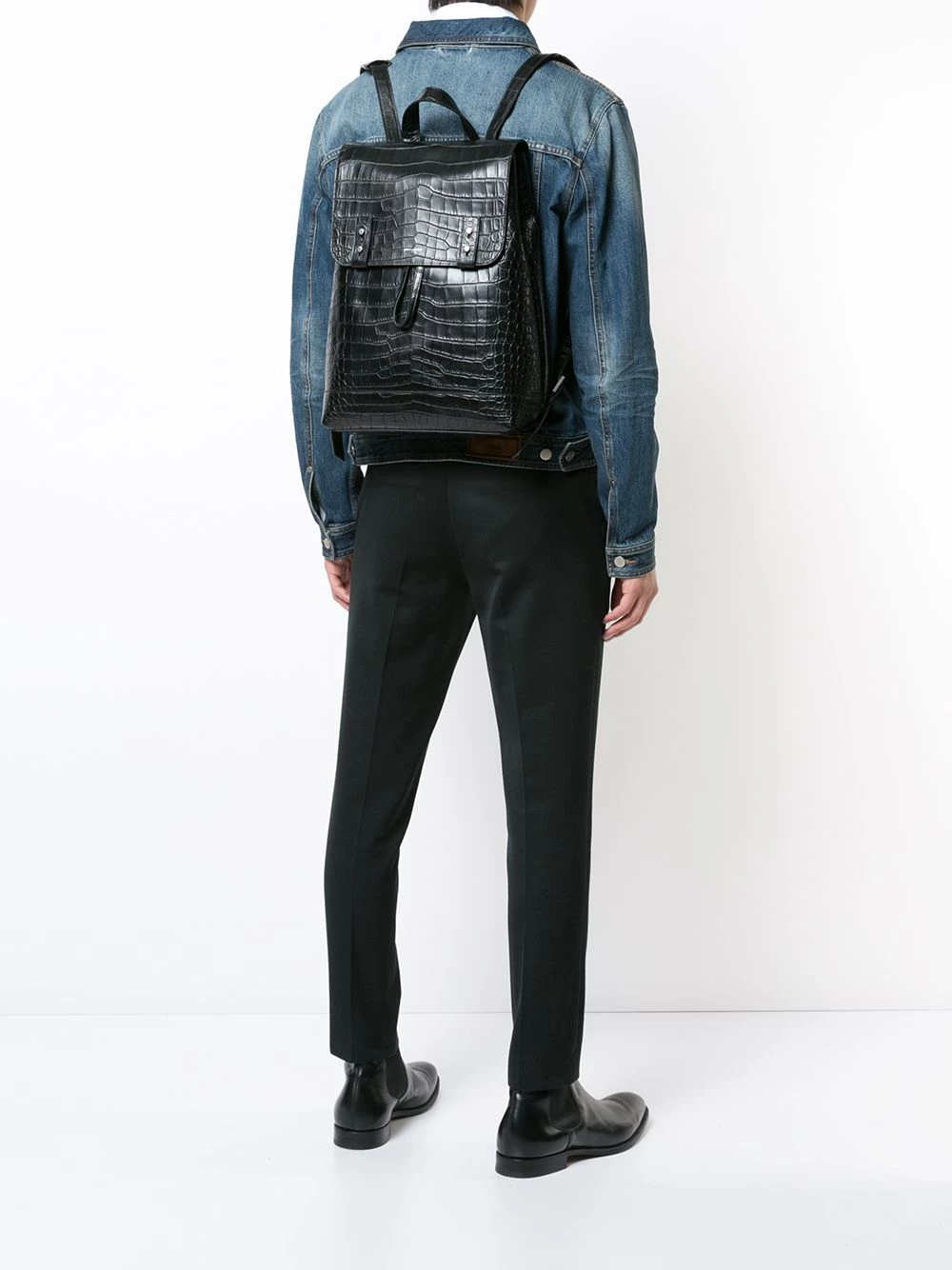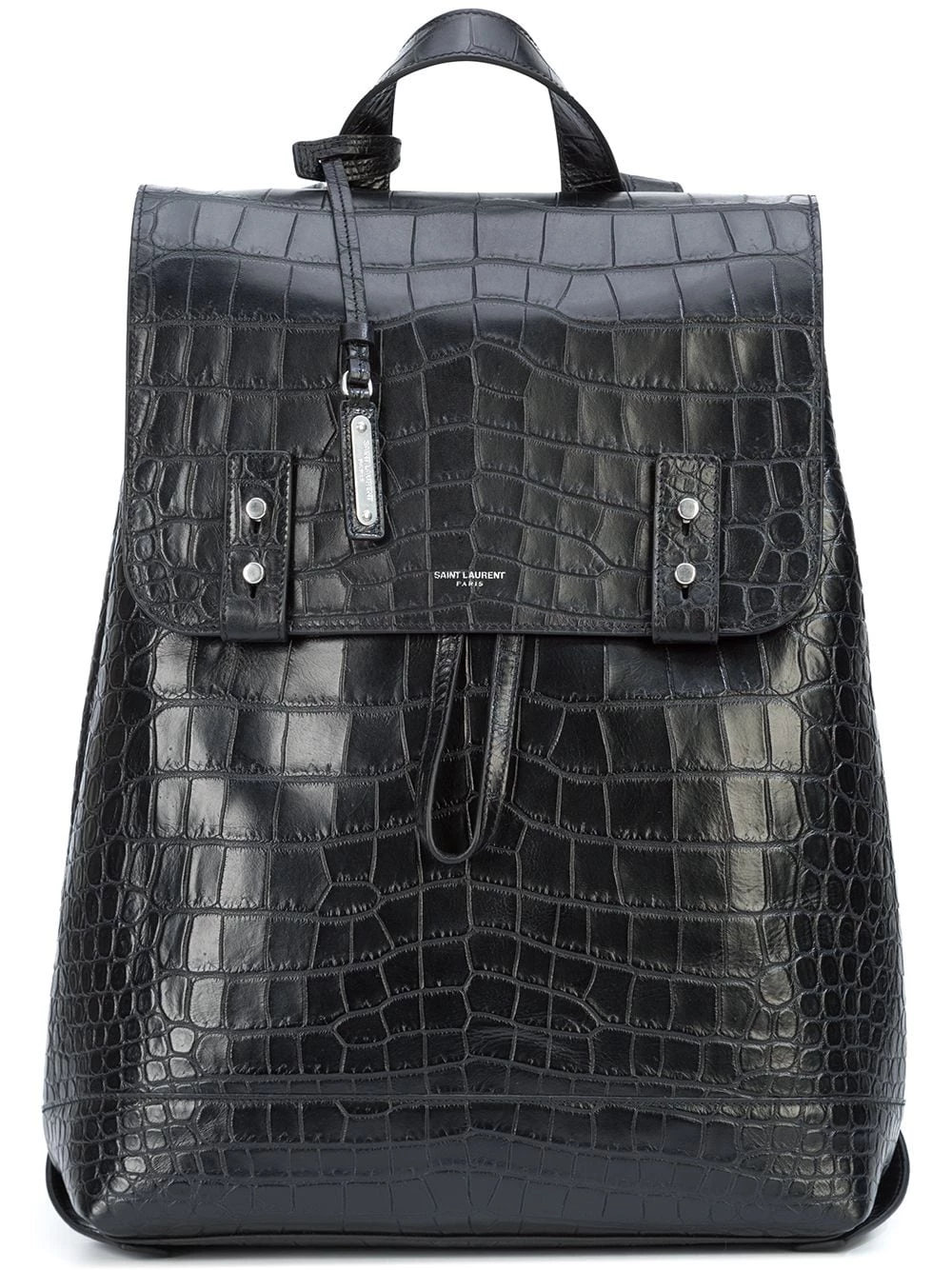 Saint Laurent’s Sac de Jour Souple backpack demonstrates the label’s effortless ability to fuse style and functionality. Constructed from crocodile embossed black leather, this Sac de Jour Souple backpack benefits from a spacious interior with a foldover top and drawstring fastening, adjustable shoulder straps, an internal slip pocket and a handy short top handle.