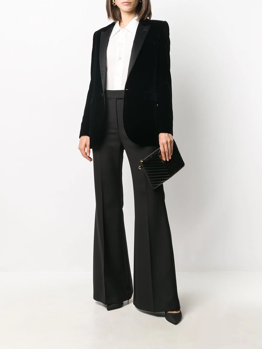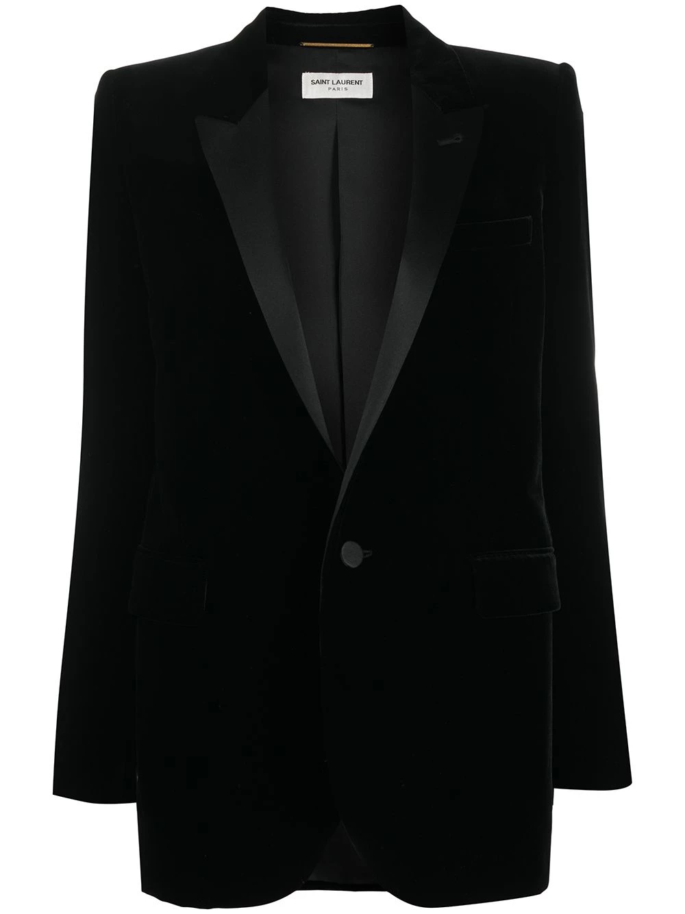 Saint Laurent has got your formal look sorted with this single-breasted velvet tuxedo jacket. Designed with satin peak lapels and structured shoulders, this elegant piece is the perfect statement piece.