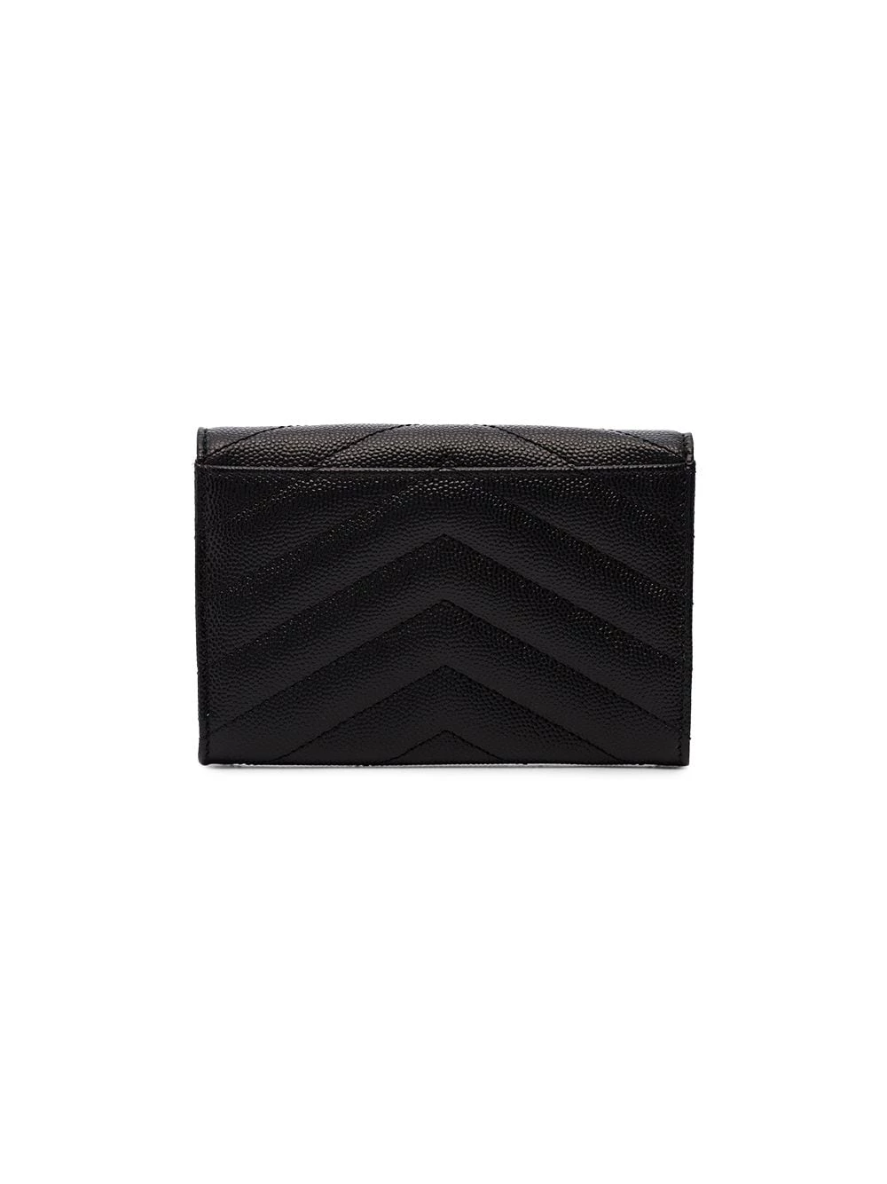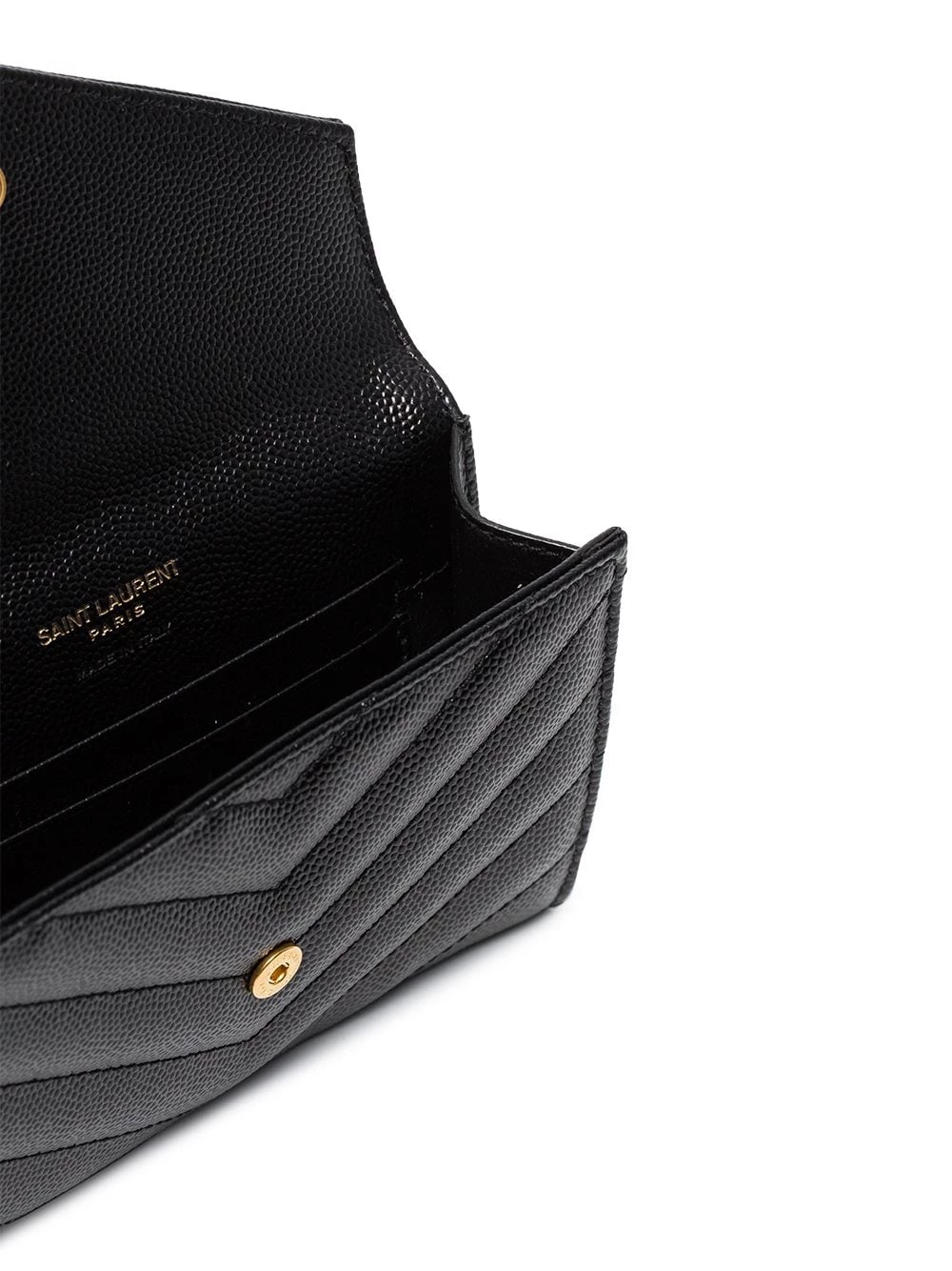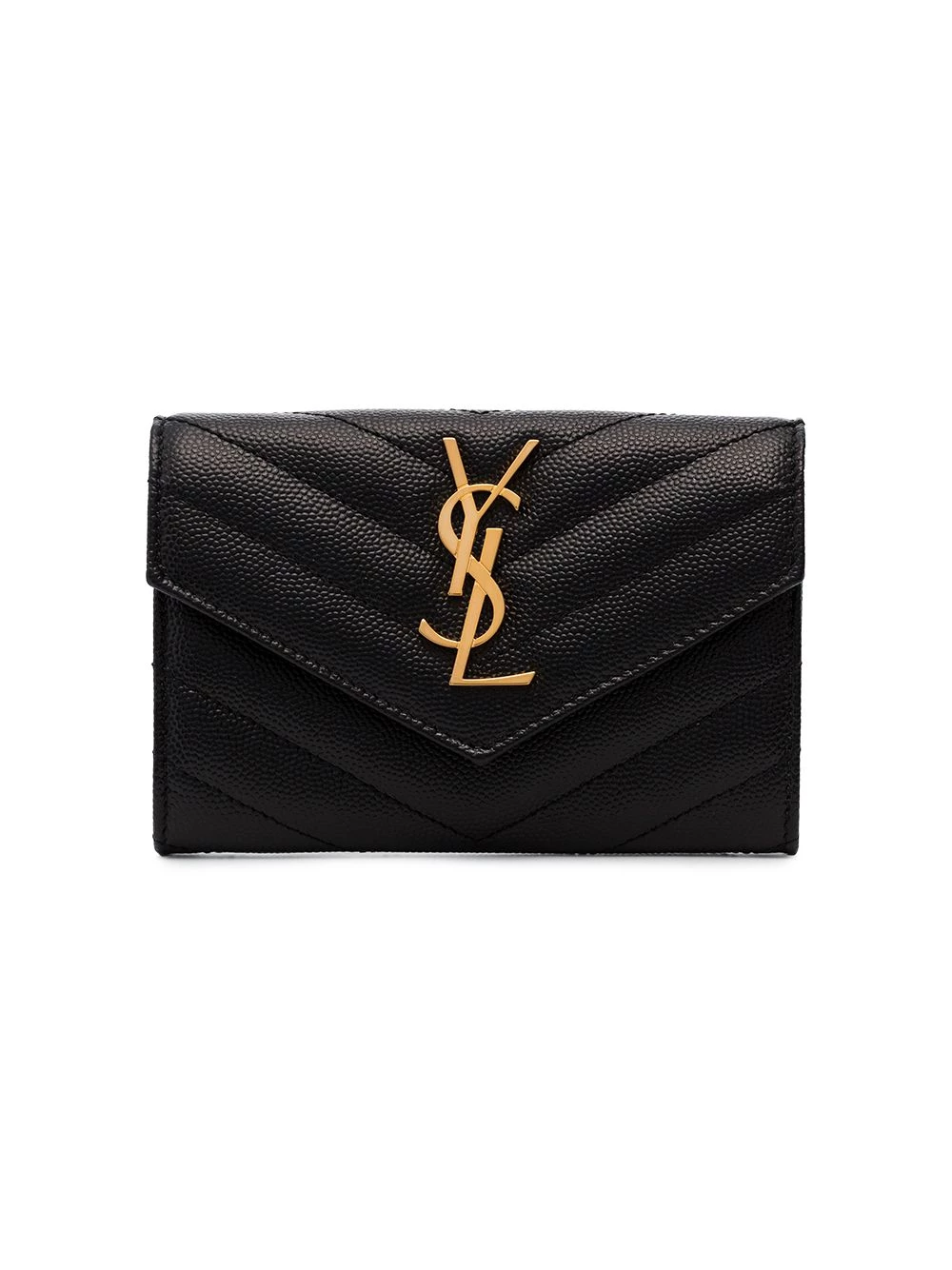 The definition of Saint Laurent? Parisian elegance with a new-age rock-and-roll edge. Iconic leather accessories are tweaked and re-worked to fit the brand’s image. Crafted from black grained calf leather, this small Monogram envelope wallet from Saint Laurent features an envelope style, a gold-tone logo plaque, a foldover top with magnetic closure and multiple interior card slots.