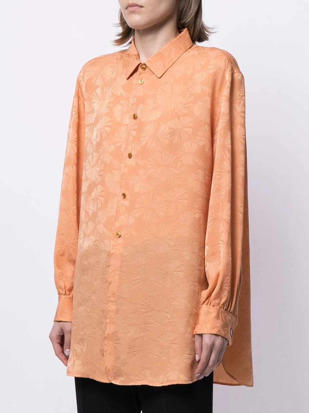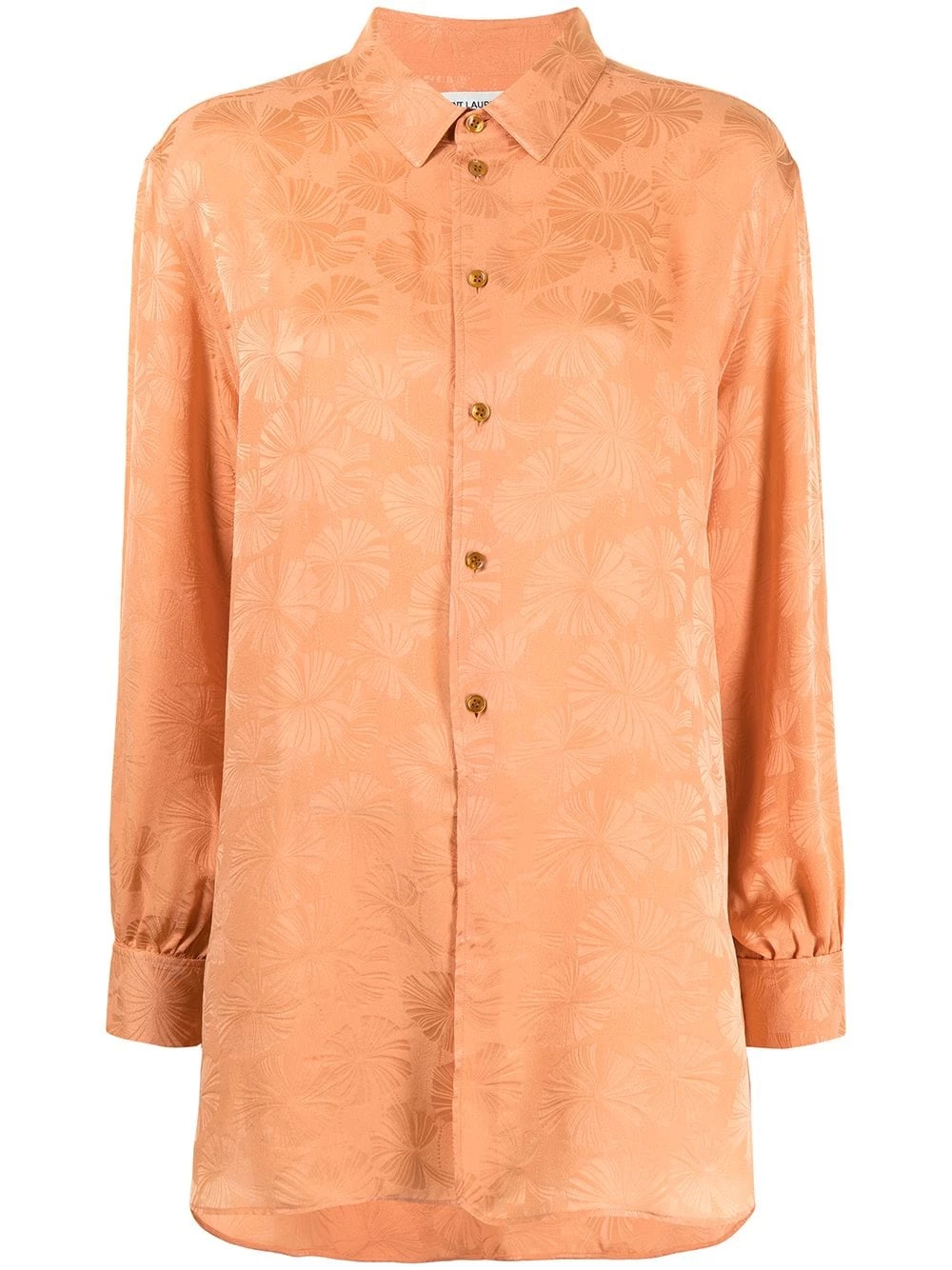 Shirts are you go-to choice for days spent at the office. That doesn’t mean you have to feel restricted though, so button-up into Saint Laurent’s soft orange draped shirt and feel divine in its silk construction. This gorgeous look is ready to work overtime.