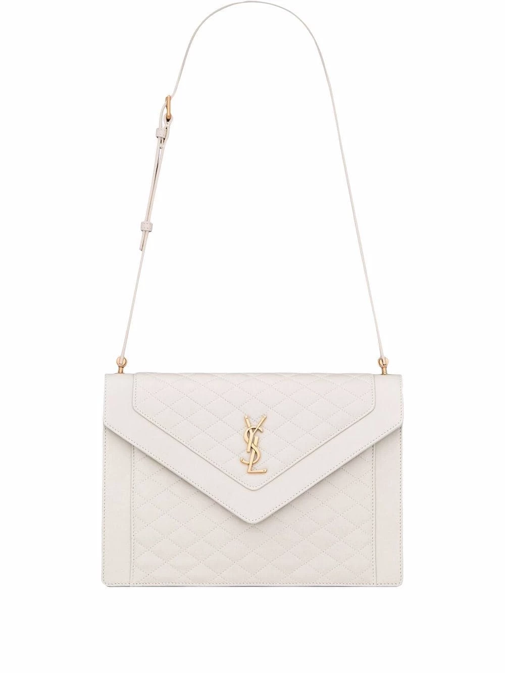 A timeless style from Saint Laurent, the Gaby envelope bag is an instant classic. The quilted design is presented here in classic white and punctuated with the signature YSL plaque in a lavish gold tone.