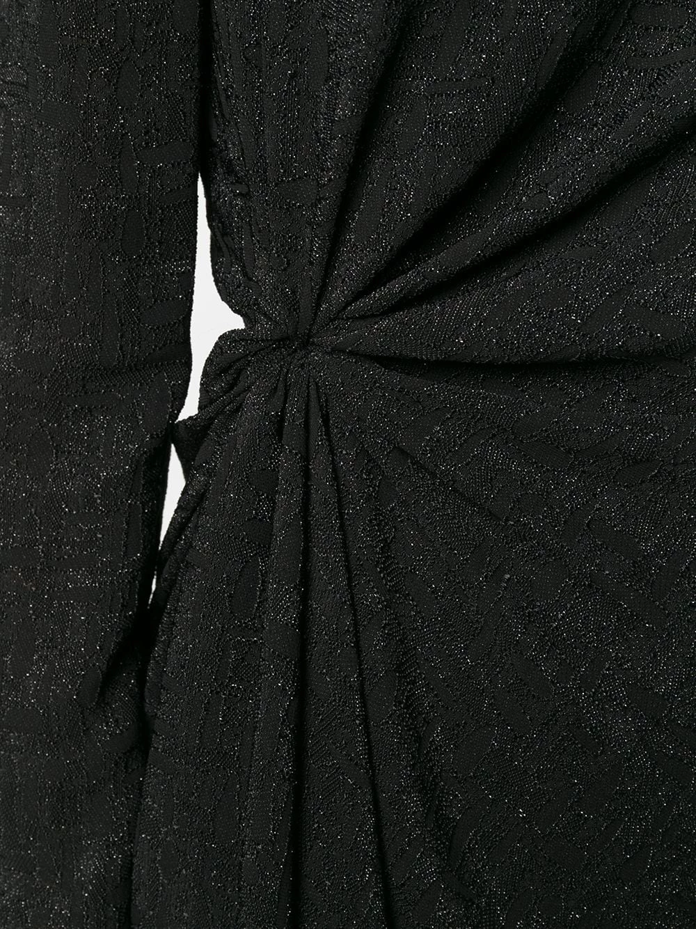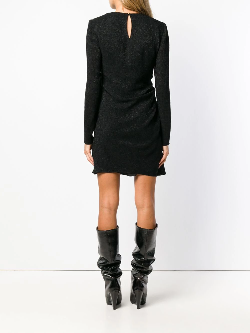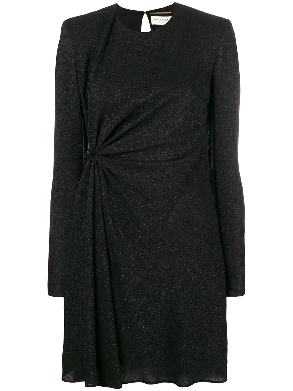 Update your autumn wardrobe with this black silk gathered glittered dres from Saint Laurent featuring a round neck, long sleeves, a gathered design and a short length.