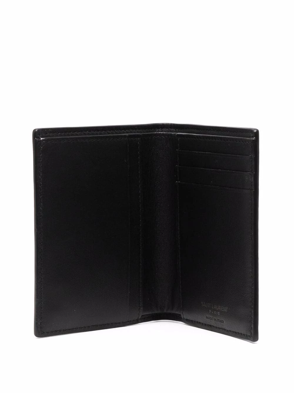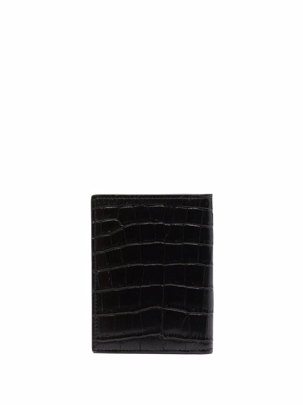Black leather logo croco-effect wallet from SAINT LAURENT featuring logo plaque, crocodile effect, foldover top, internal card slots and internal note compartments.