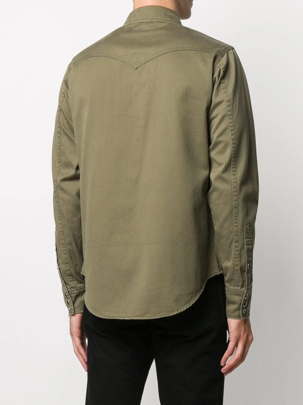 Ready for the saloon? So is this shirt from Saint Laurent; in a khaki green hue and tailored fit, this piece is watering-hole-ready. Click your spurs.