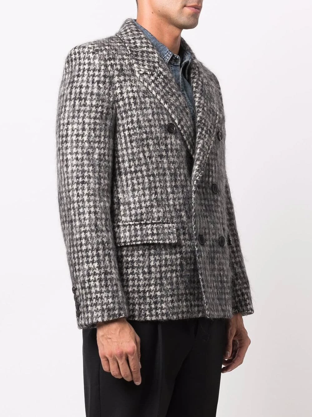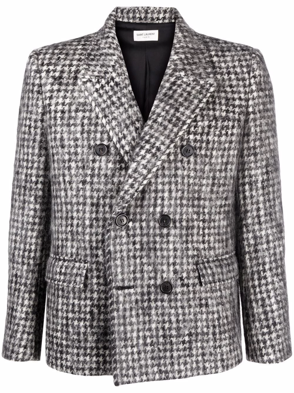 Saint Laurent is synonymous with timeless style, and this double-breasted jacket is proof of that. Spun from a soft wool blend, this blazer comes with a classic houndstooth pattern and is finished with notched lapels.
