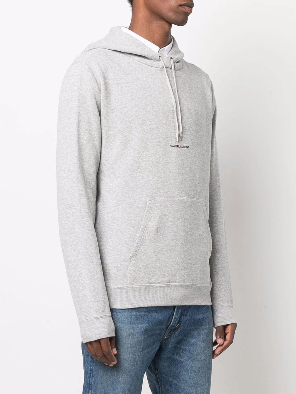 Saint Laurent proves that even the most casual of pieces can look sleek. Constructed from soft cotton in a grey hue, this hoodie is accented with a small version of the brand’s monogram at the chest and a spacious front pouch pocket, reflecting the brand’s Parisian flair.ย